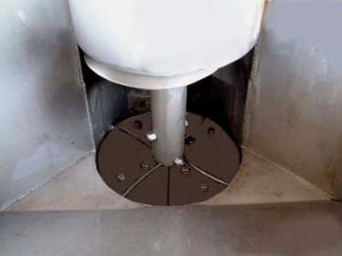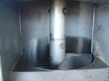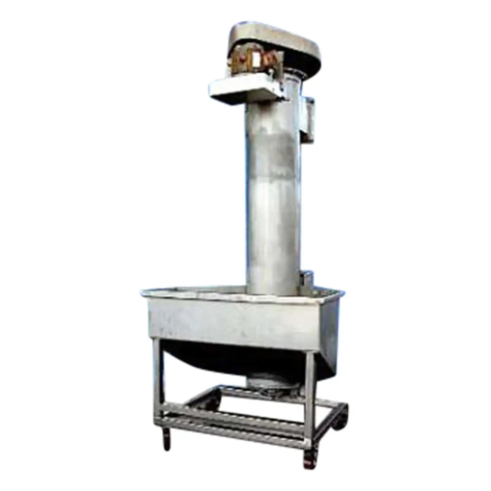 Barrena vertical Lyco Destoner. Modelo DM16-72. Número de serie 1.61E+09. Acero inoxidable. Diámetro del sinfín: 14-1/2 pulg. El sinfín vertical emerge desde un tanque de forma irregular de 48 pulg. de largo x 24 pulg. de ancho x 27 pulg. de alto hasta una altura de descarga de 7 pies, 6 pulg. Dimensiones de descarga: 16 pulg. Ancho x 12 pulgadas. Alto. Altura total: 9 pies, 3 pulgadas. El sinfín recoge el producto flotante y lo eleva hasta el punto de descarga, mientras que los productos pesados no flotantes se hunden hasta el fondo del tanque para retirarlo y desecharlo. La unidad está entera y completa, excepto por una cubierta protectora de la cadena de transmisión en la parte superior de la máquina y un conducto de descarga. Está montado sobre ruedas para operación portátil.