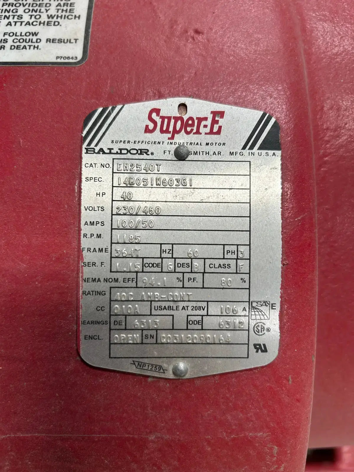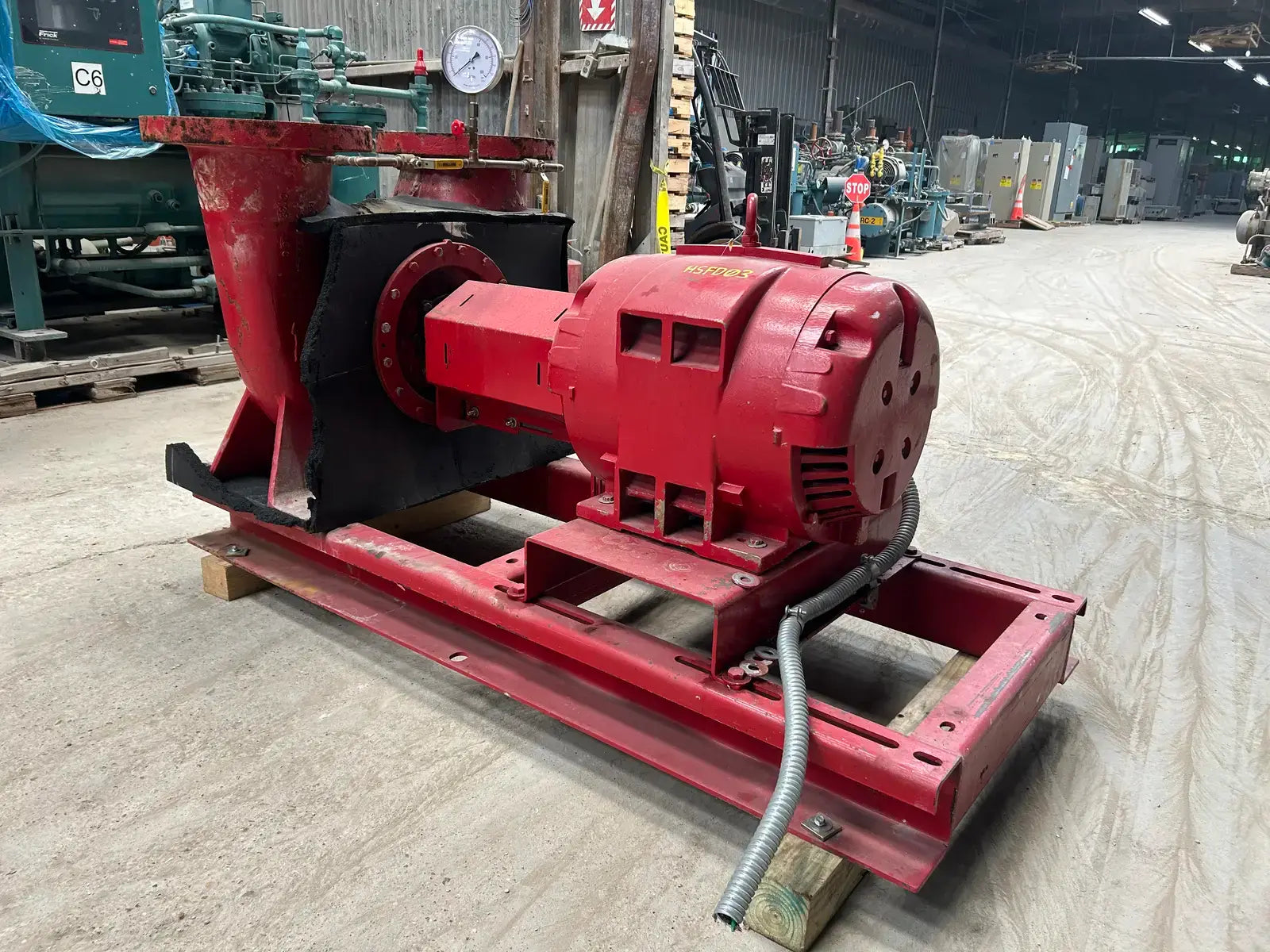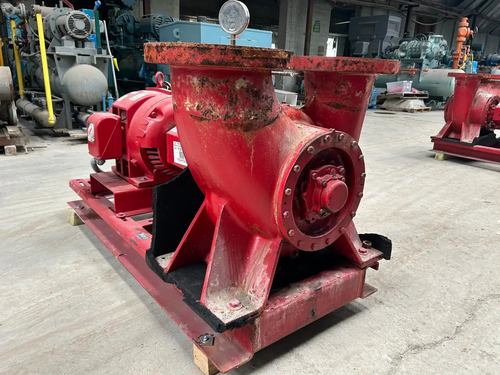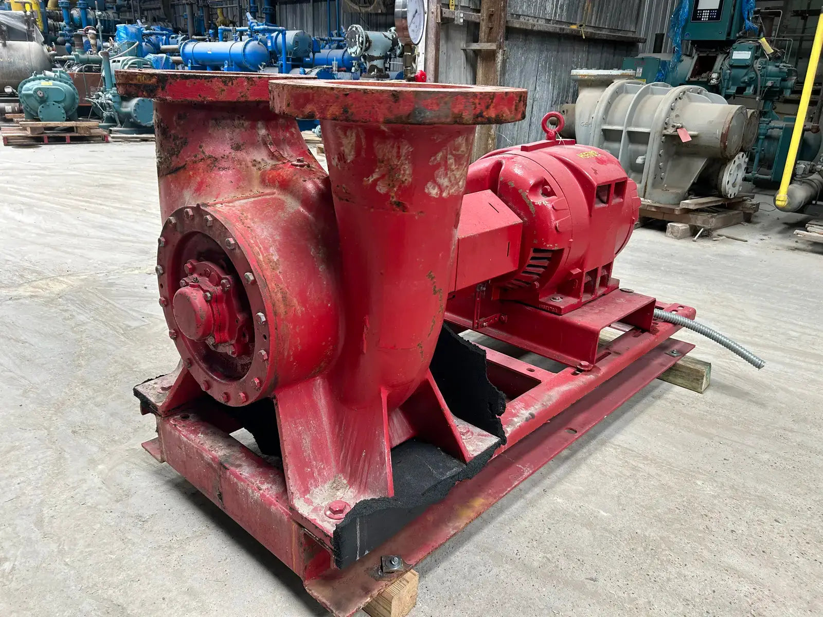 Bomba centrífuga vertical de carcasa partida Bell & Gossett serie VSC. Modelo: VSC. N.º de serie: C13398-01 L40. Dimensiones: 10 x 10 x 13. Impulsor (pulg.): 11,625 pulgadas. Succión (pulg.): 10 pulgadas. Descarga (pulg.): 10 pulgadas. Presión máxima de trabajo (PSI): 175. Caudal máximo (GPM): 1800. RPM máximas: 1200.