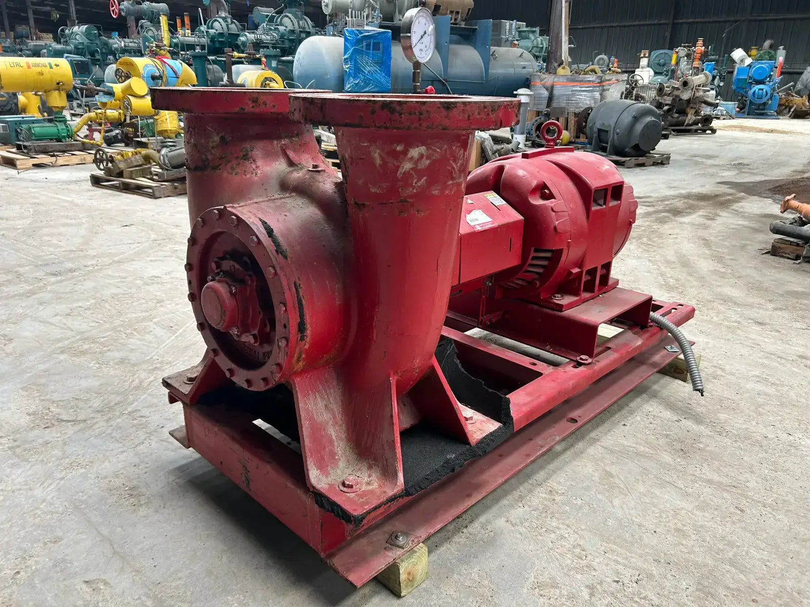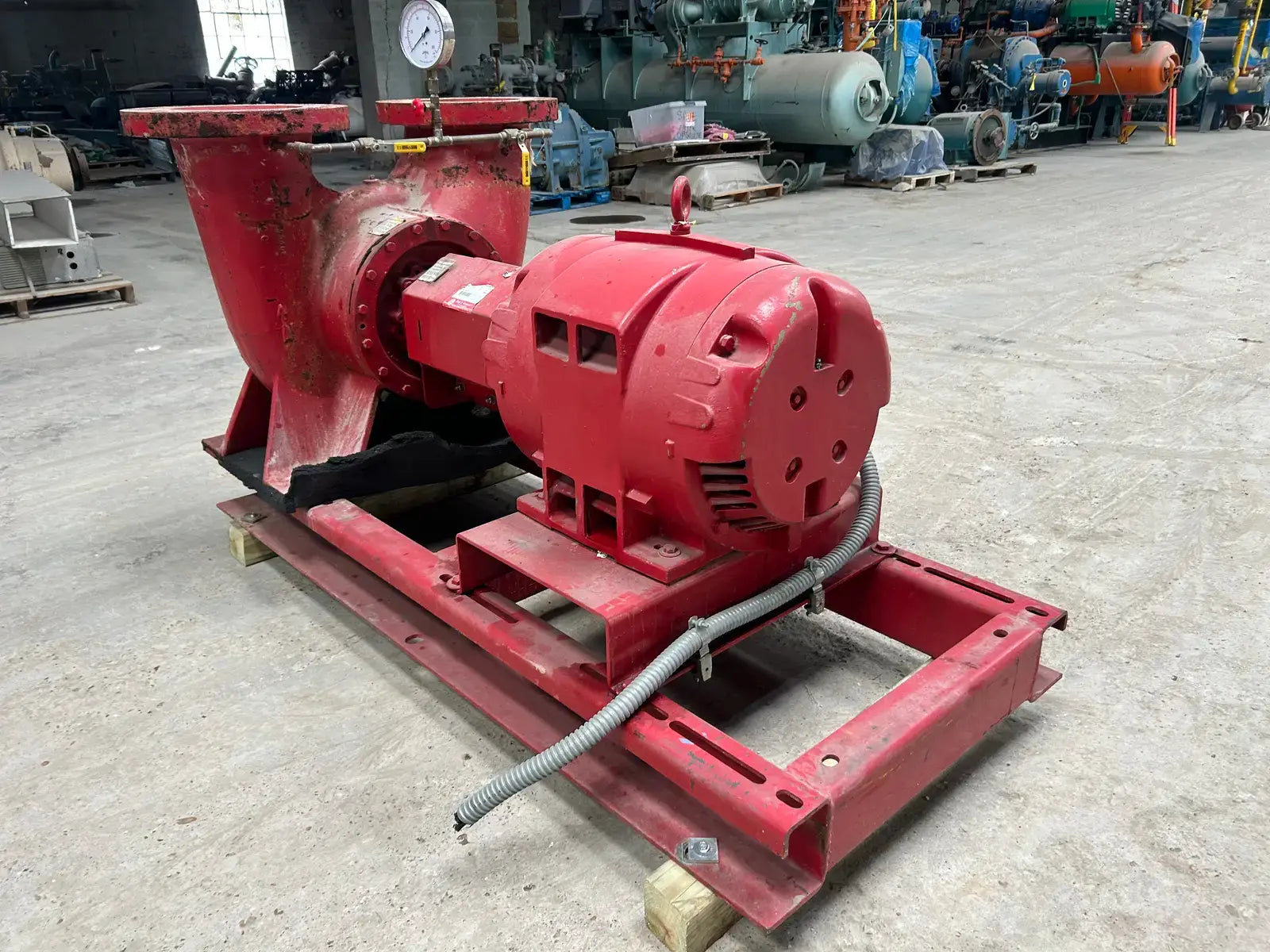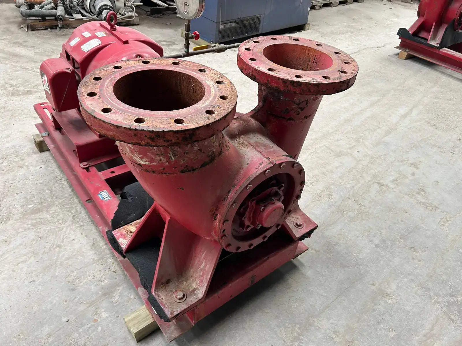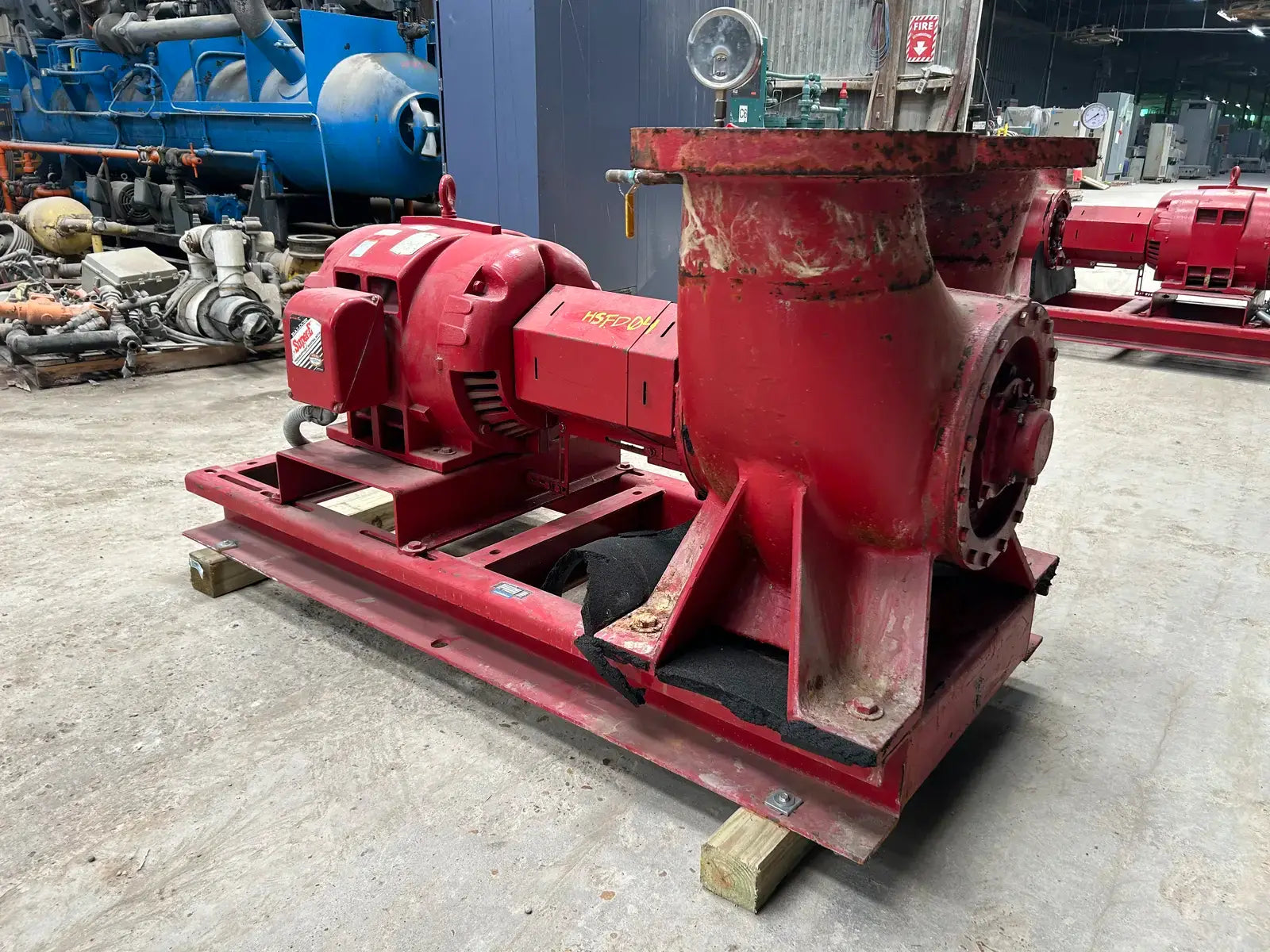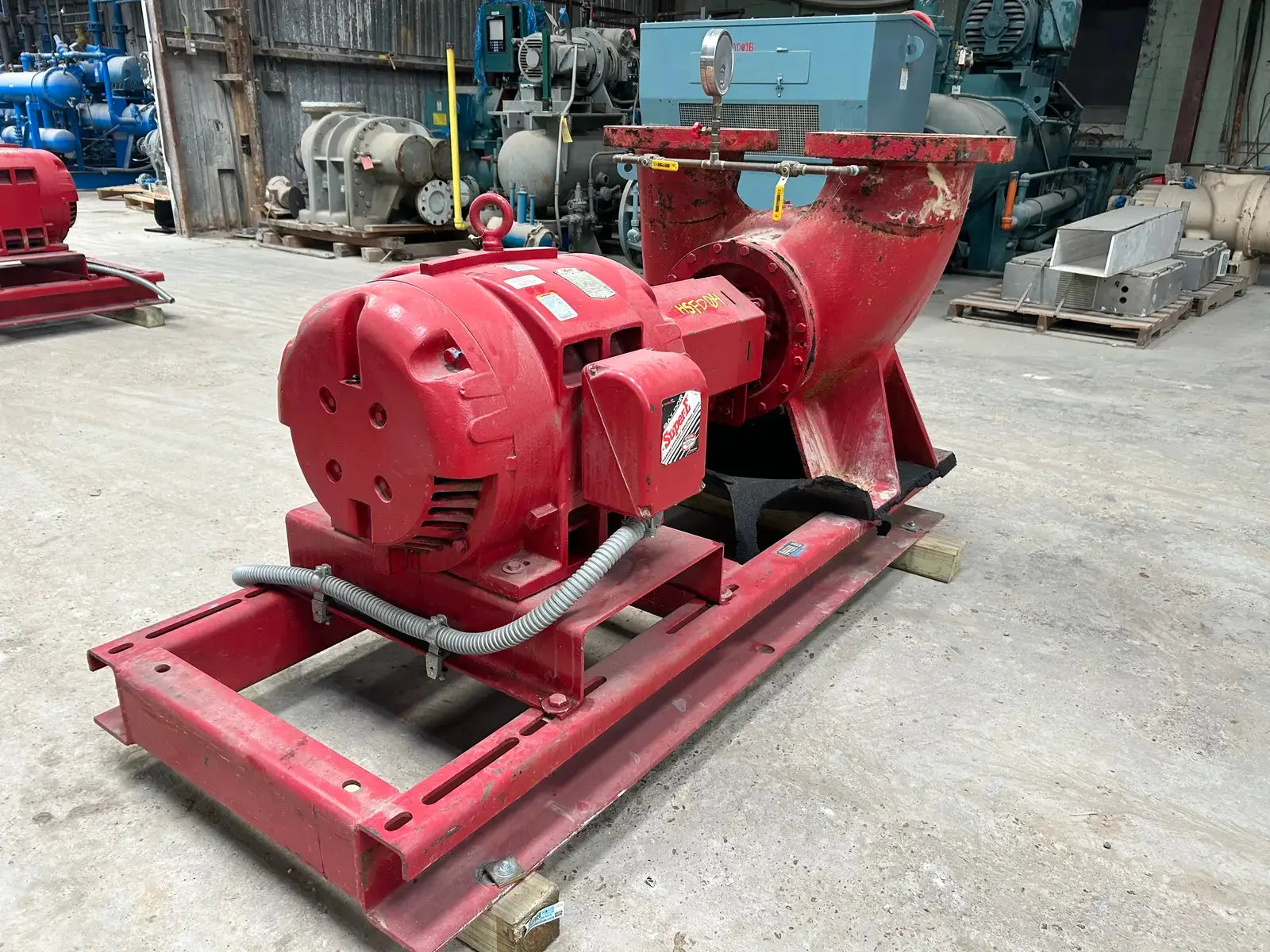 Bomba centrífuga vertical de carcasa partida Bell & Gossett serie VSC. Modelo: VSC. N.º de serie: CT3398-02 L40. Dimensiones: 10 x 10 x 13. Tamaño del impulsor: 11.625. Succión (pulg.): 10 pulgadas. Descarga (pulg.): 10 pulgadas. Presión máxima de trabajo (PSI): 175. Caudal máximo (GPM): 1800. RPM máximas: 1200.
