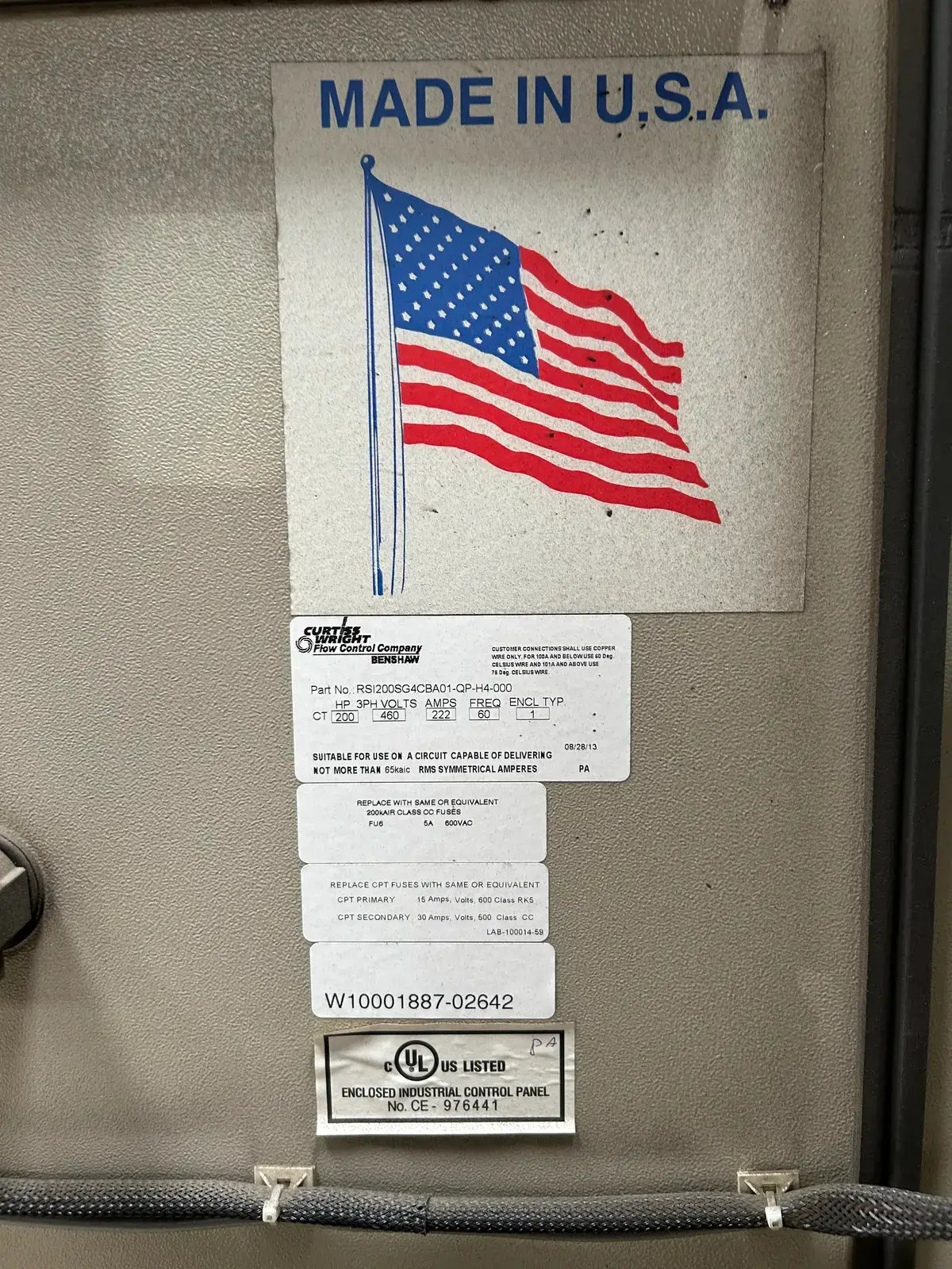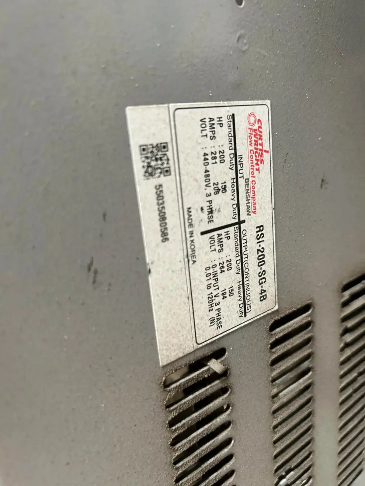 Arrancador de motor para compresor de tornillo Benshaw Advanced Controls. Modelo: RSI200SG4CBA01-QP-H4-000. Fuente de alimentación: 200 HP, 460 V, 222 A, 60 Hz, 1 tipo ENCL.