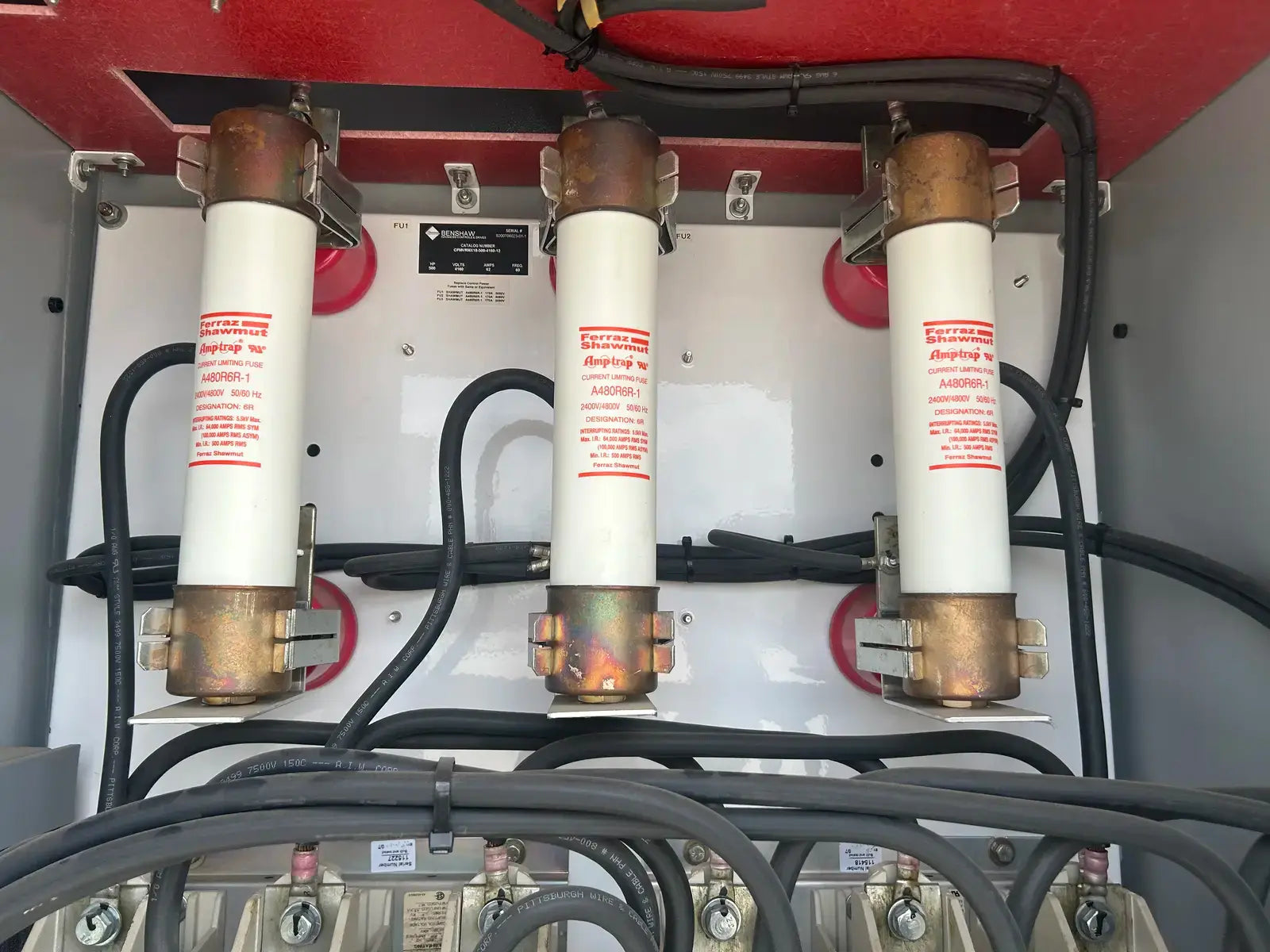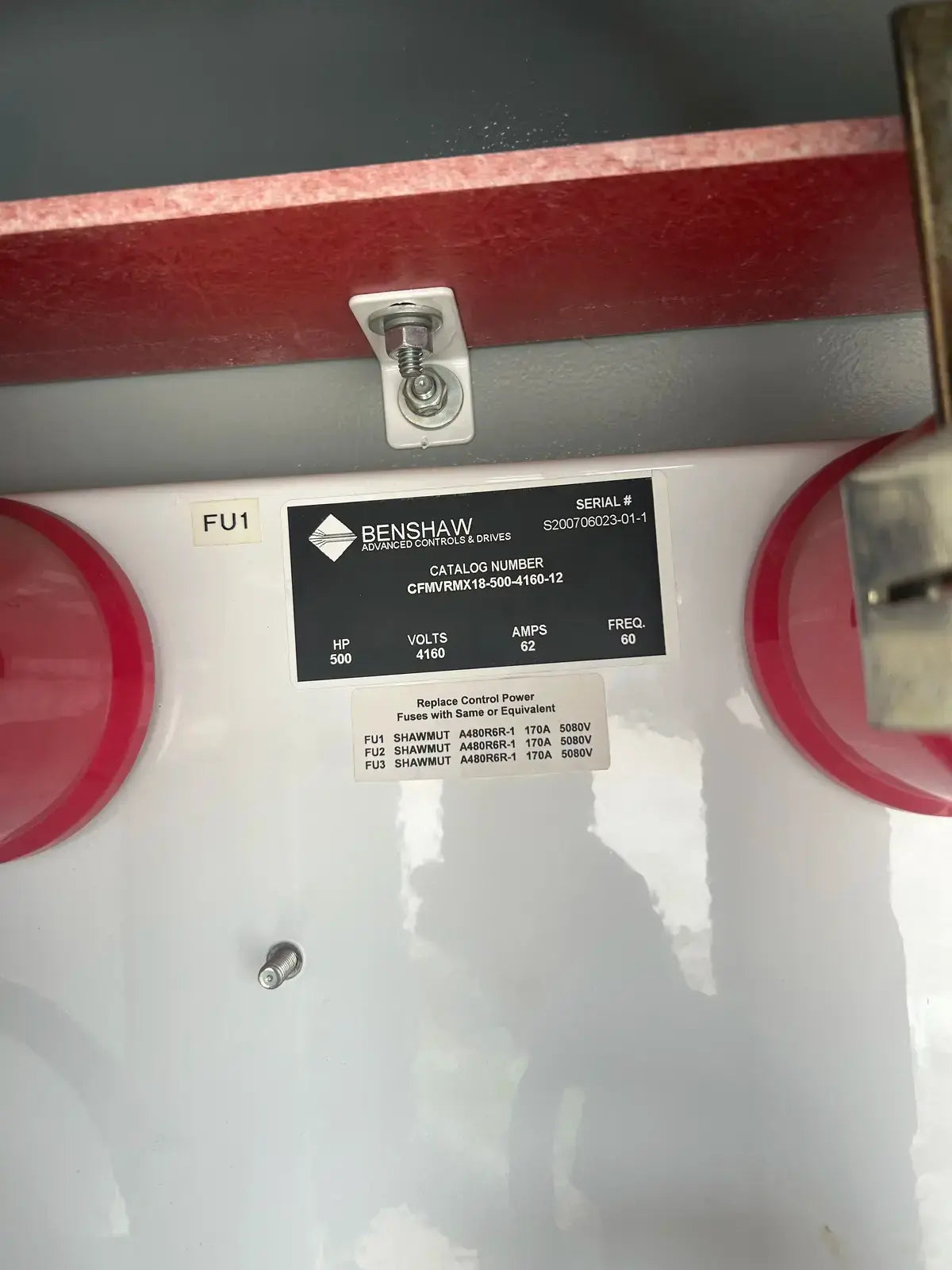 Arrancador suave Benshaw serie CFMVRMX. Modelo: CFMVRMX18-500-4160-12. N.º de serie: S200706023-01-1. Fuente de alimentación: 500 HP, 4160 V, 63 A, 60 Hz.