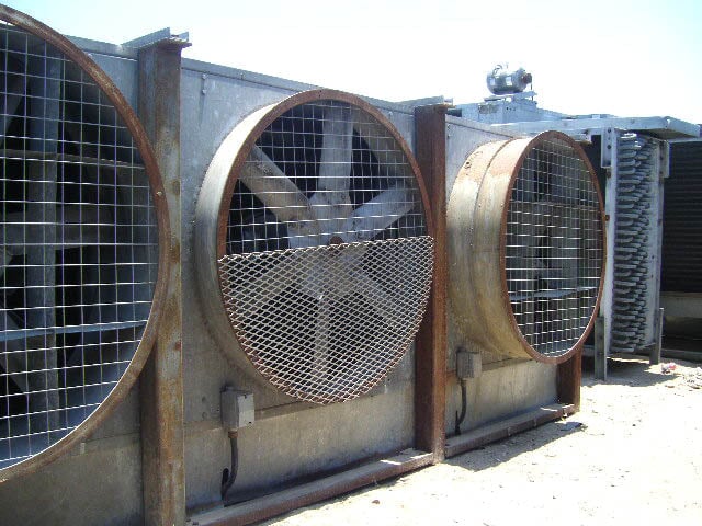 (2) McQuay – Sopladores evaporativos de freón de 3 ventiladores de la División Rigidbilt de Perfex, Inc. Modelo: AF450-103RFWD. Usado por última vez con R22. Dimensiones totales para (1) unidades: 17 pies de largo x 5 pies 5 ½ pulgadas de ancho x 6 pies 7 pulgadas de alto (H15).