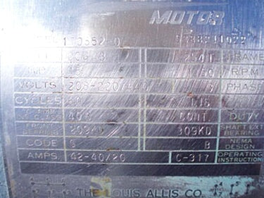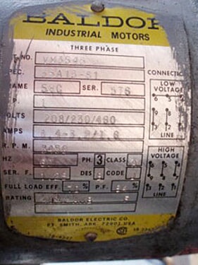 - Si hay varios motores, descripciones de motores frente a especificaciones: (1) 15 hp Centrifugal Fans with Pacemaker Electric Motor, (1) 1 hp Submersible Pump with Baldor Motor, and (1) 1 hp Submersible Pump with U.S. Electric Motor