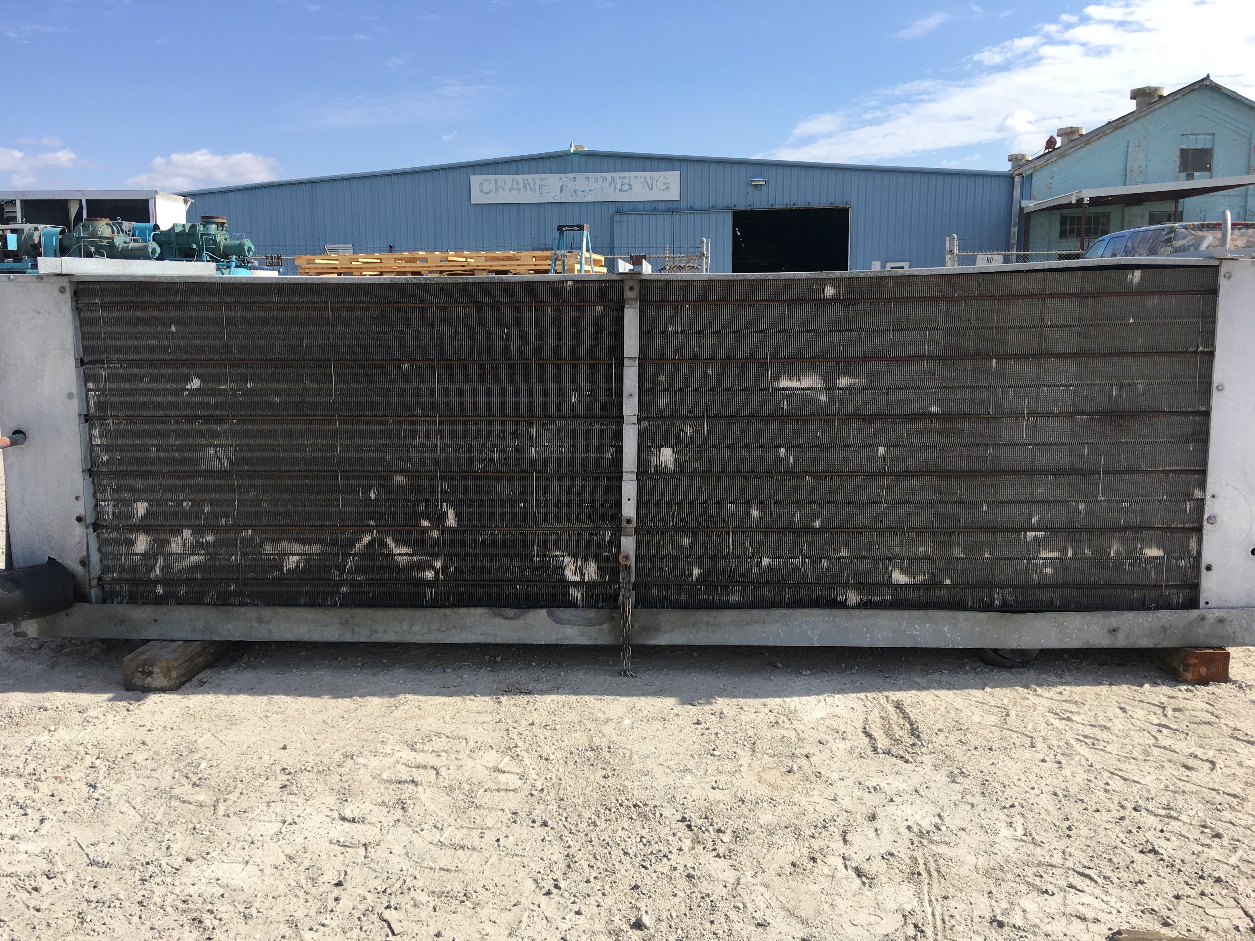 Serpentín evaporador Hussmann SM24E-989-AMM 460/3 T IP - 12.975 TR, 2 ventiladores (temperatura baja/media) Se puede utilizar con serpentines húmedos o esmerilados. Un Frosted con una capacidad de 9890 (BTUH / °F TD) con un tonelaje estimado de 12(TR) @15TD(TR) @15TD. Una capacidad húmeda de 10380 (BTUH / °F TD) con un tonelaje estimado de 12,975(TR) a 15TD. Un flujo de aire de 18400 CFM. Baterías de alimentación superior recirculadas con descongelación eléctrica. 4 aletas por pulgada y 2 ventiladores. Utilizado anteriormente con freón.