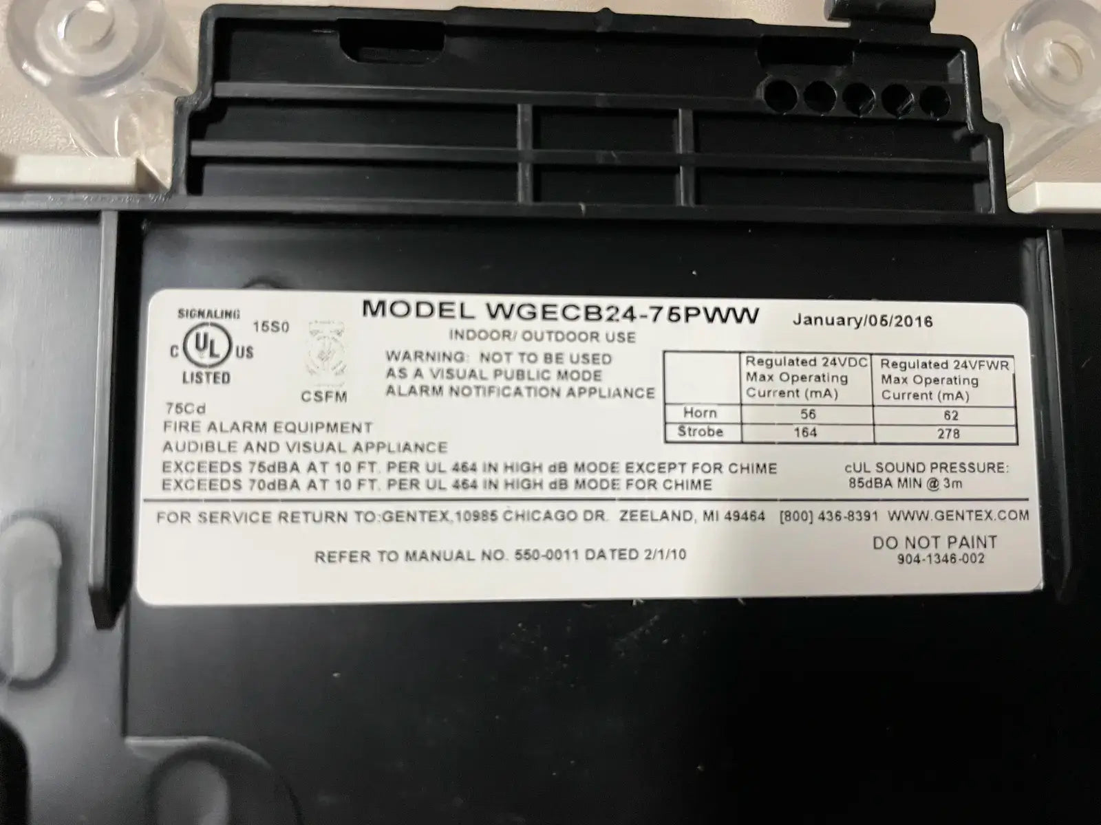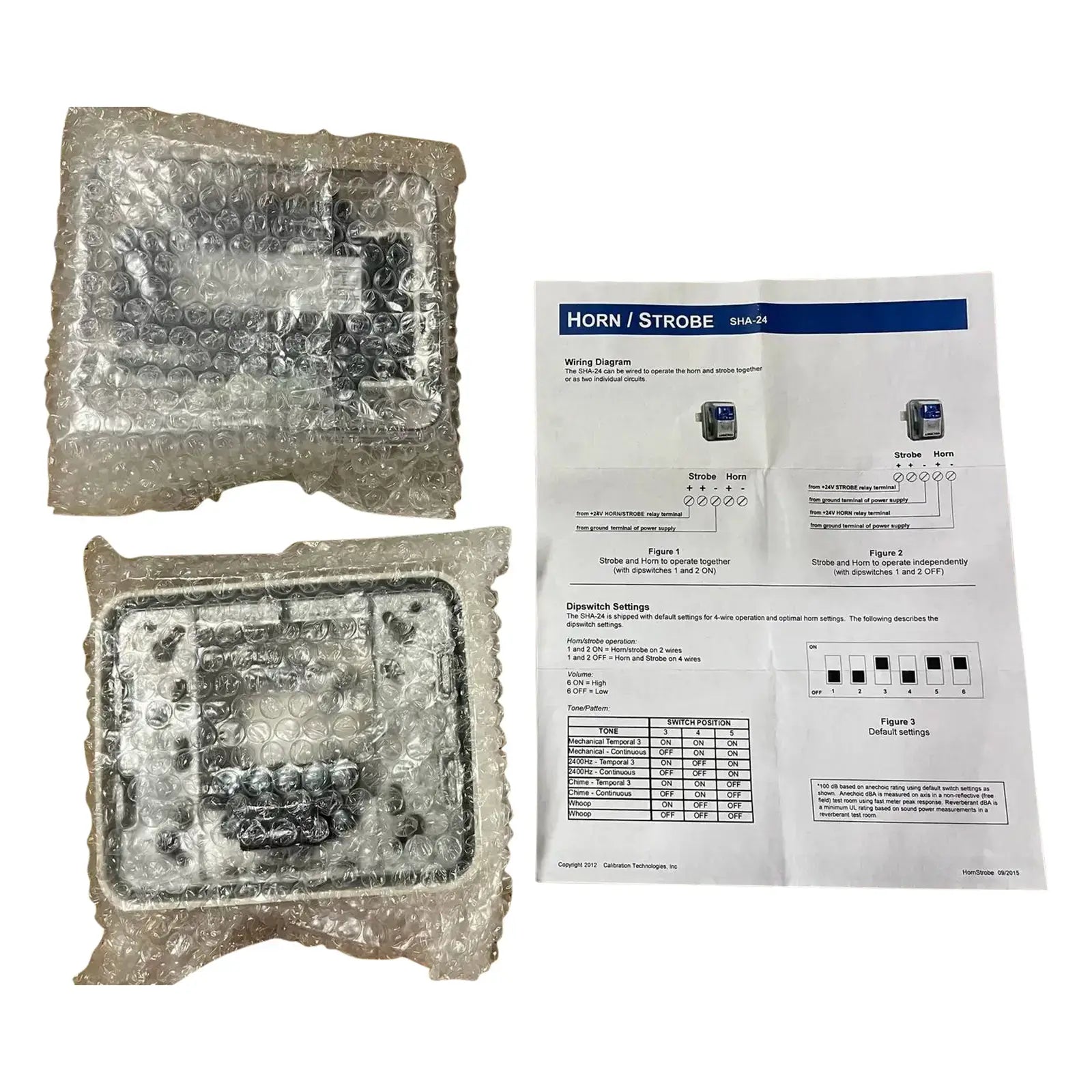 Bocina/estroboscópica de alarma de amoníaco (azul). Modelo: SHA-24. Intensidad estroboscópica: 65 candelas. Salida de sonido: 100 dB a 10 pies. Velocidad de flash: 1 flash por segundo. Voltaje: 24 VCC a 150 mA. Temperatura de funcionamiento: -40*F - 150*F.