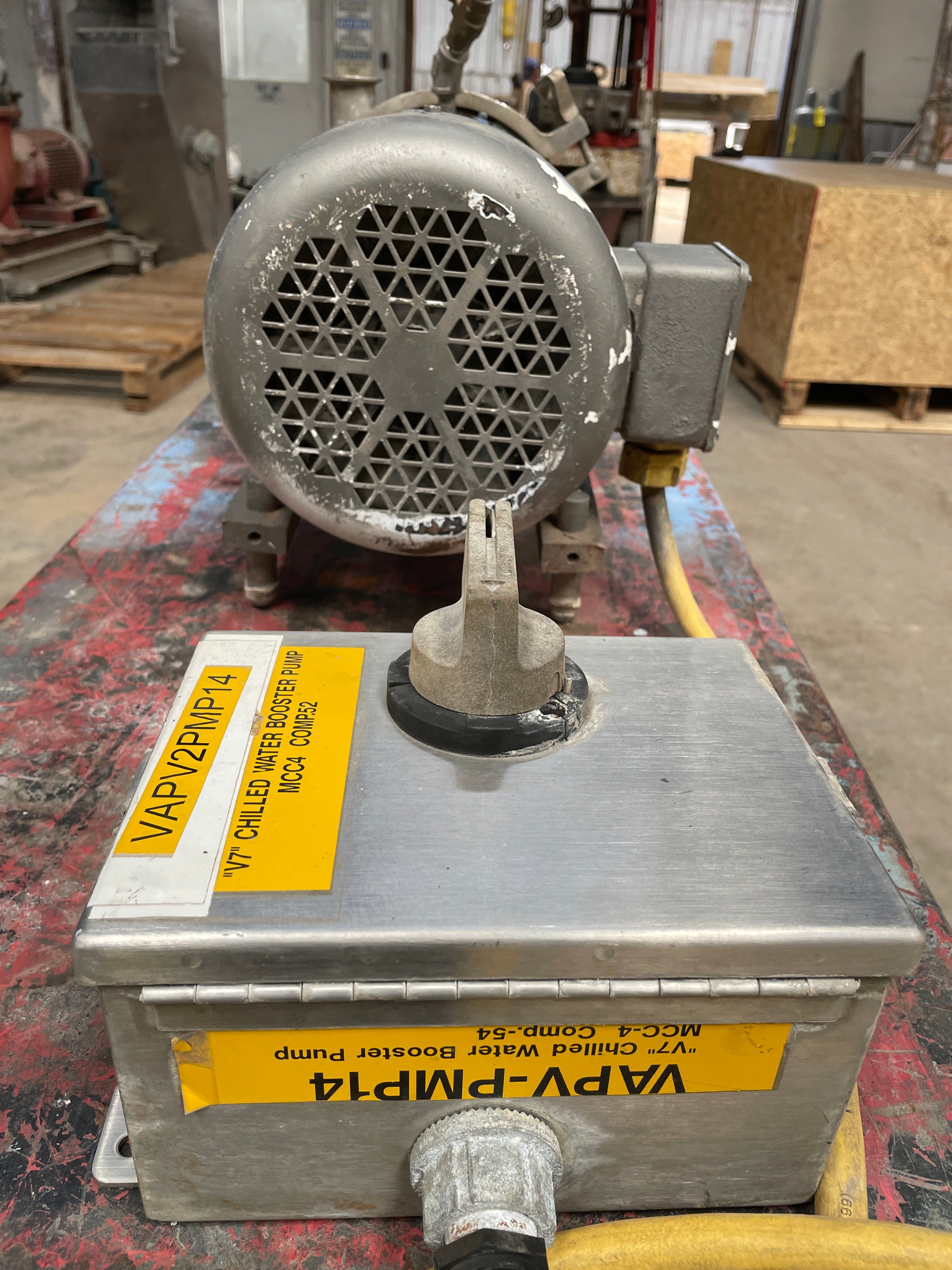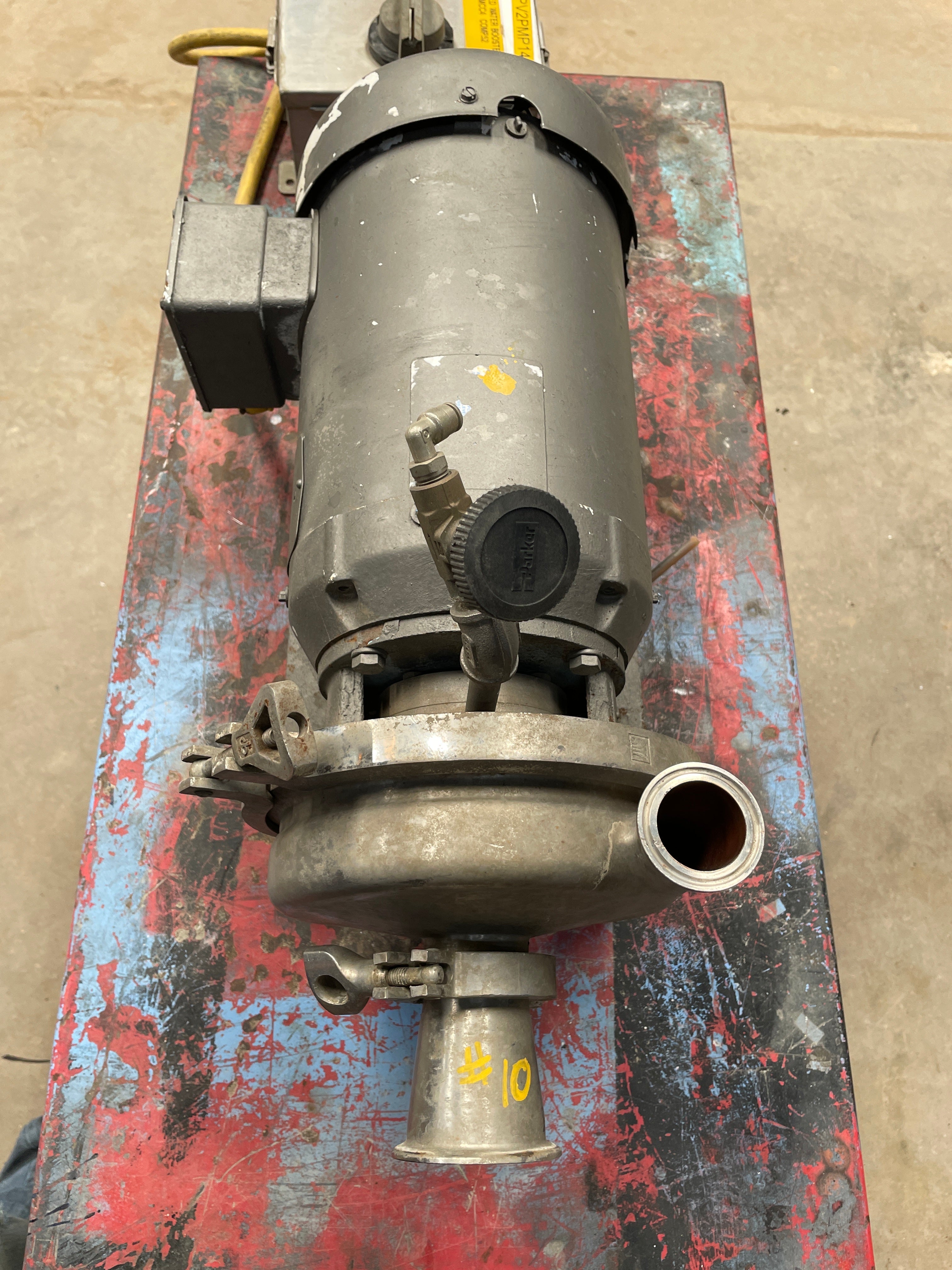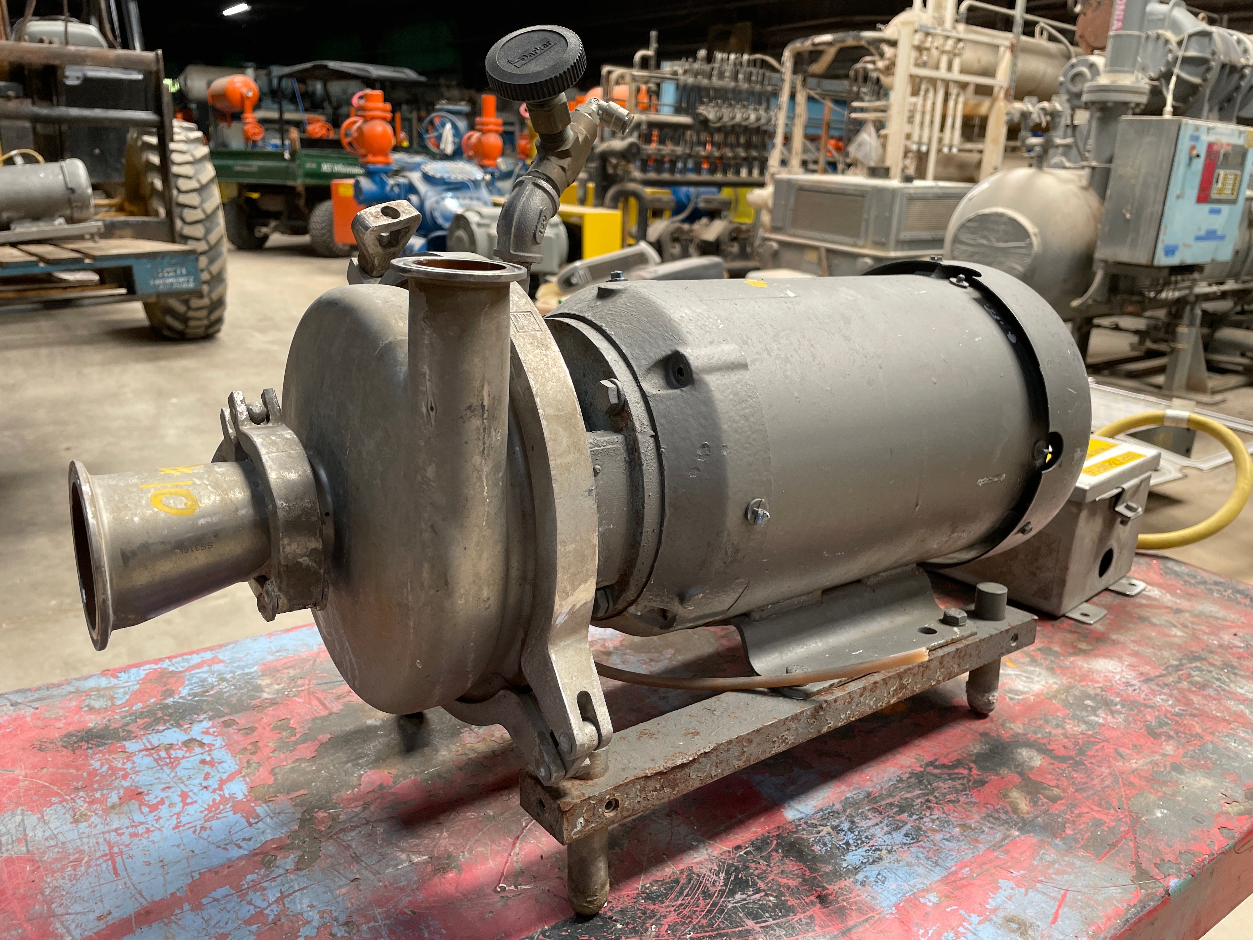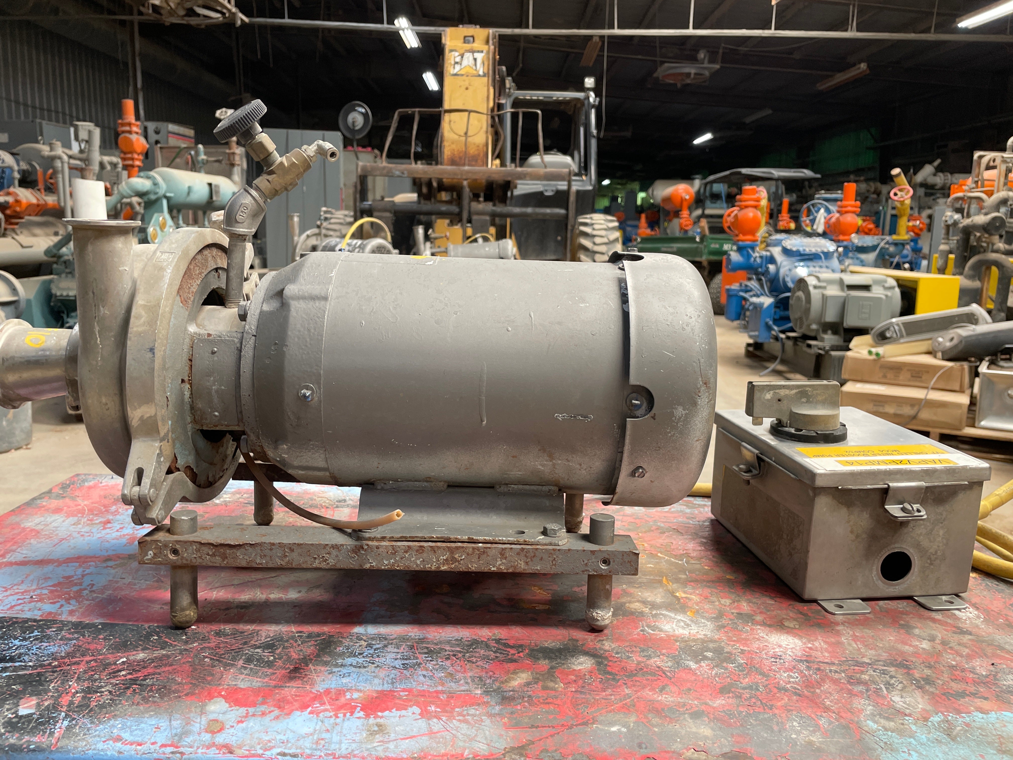 Bomba centrífuga Alfa Laval LKH. Modelo: LKH. A la bomba le falta la placa de datos. Motor Baldor: HP: 5, Voltios: 208-230/460, AMPS: 13/2-12/6, RPM: 3450, HZ: 60, PH: 3, Marco: 184JM.