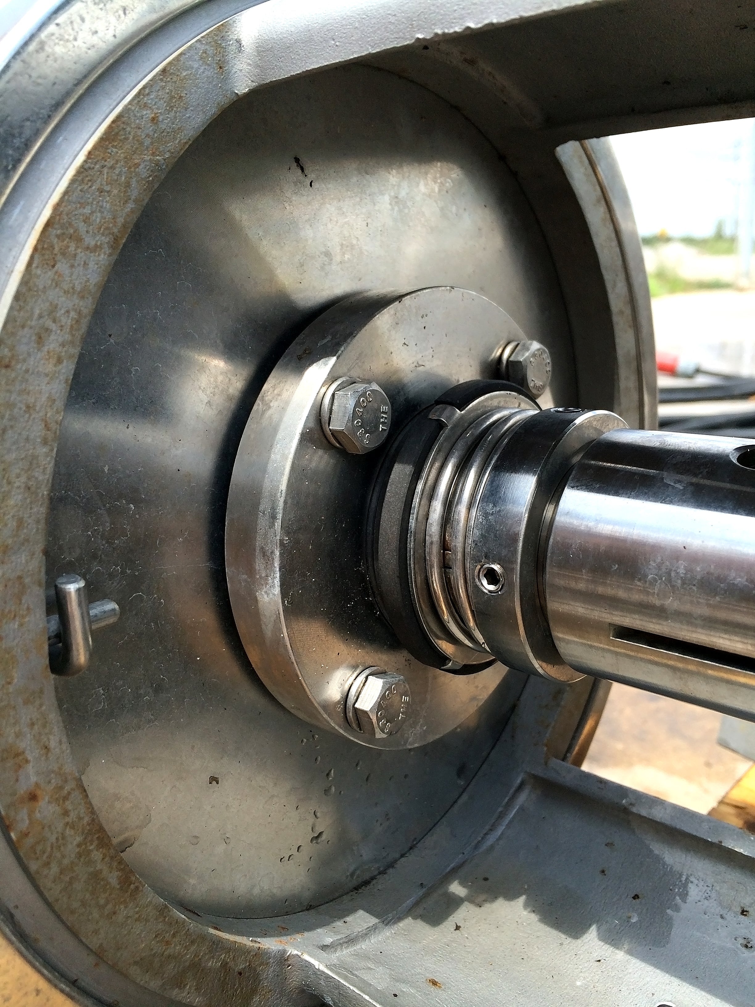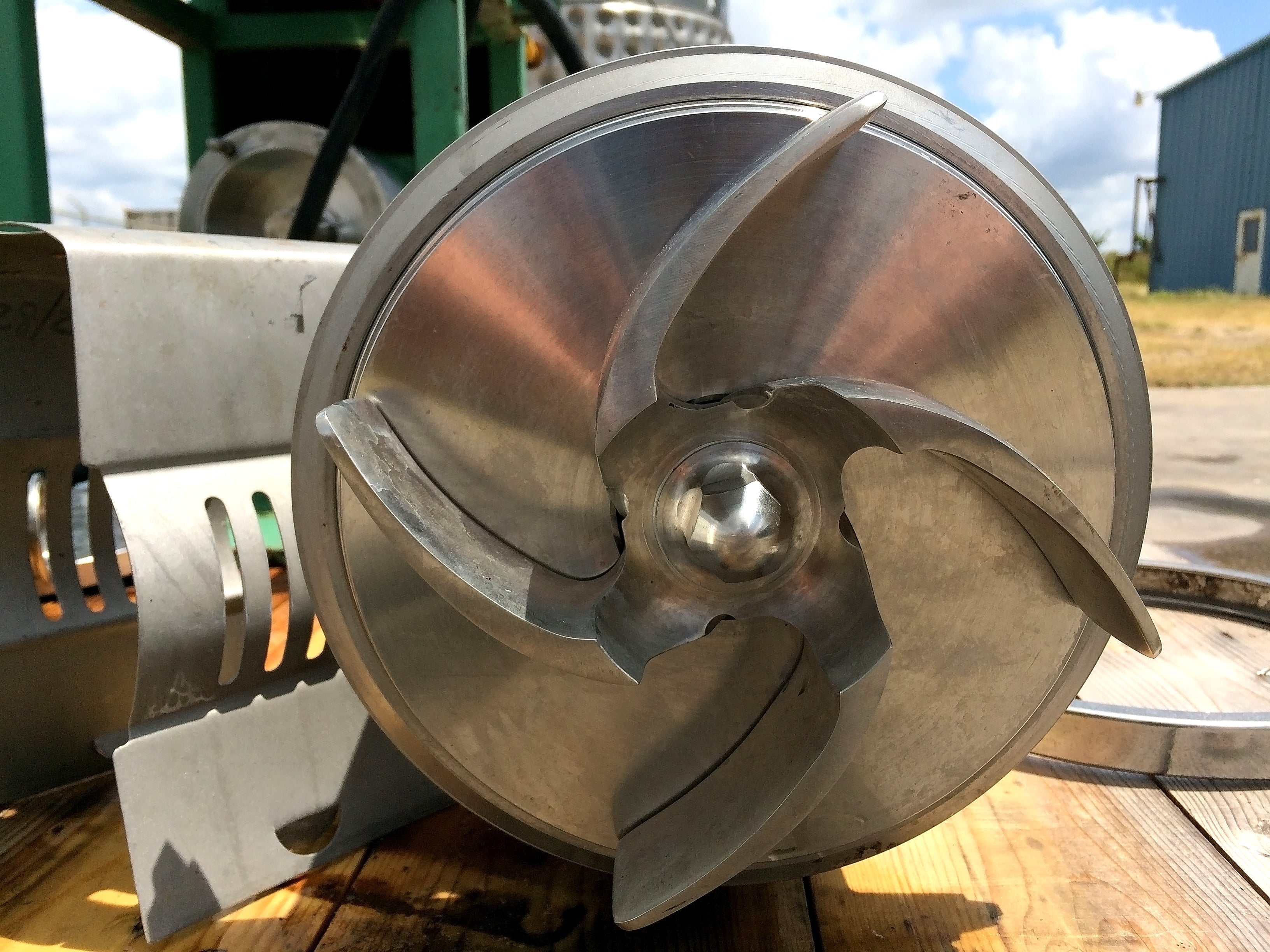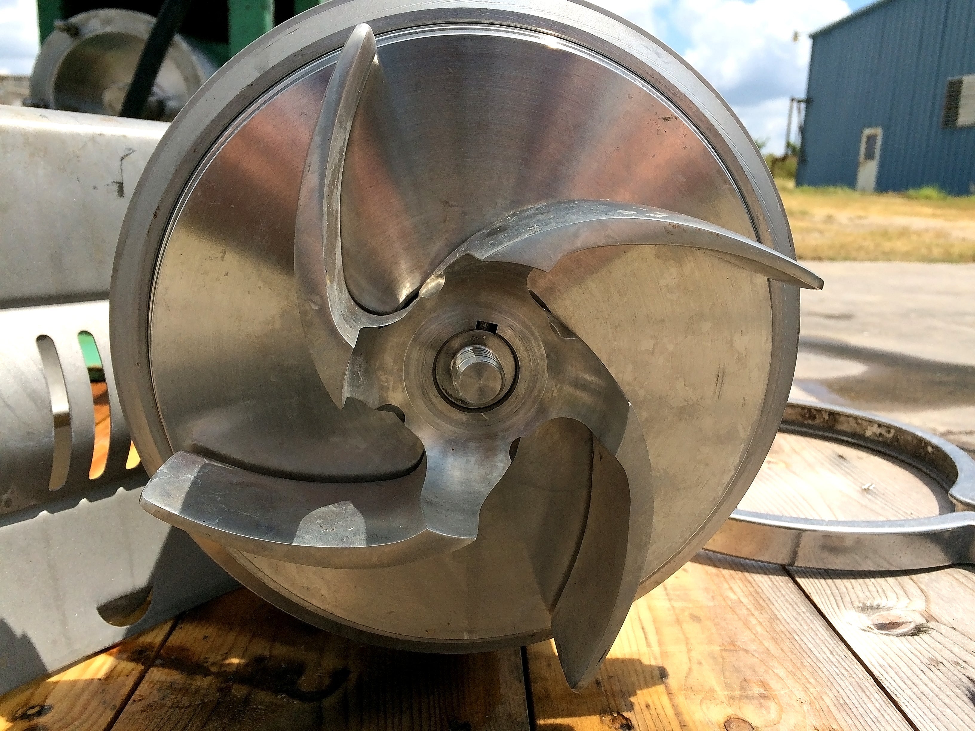 Bomba centrífuga de acero inoxidable Ampco. Modelo: AC+328MDG21T-S. Serie: CC-61023-1-1. IMP: 8. Hecho en EE.UU. A3. Diámetro del impulsor: 7,75 pulg. Motor trifásico Baldor, falta la placa de identificación. Puertos: 3 pulg./ 2 pulg.