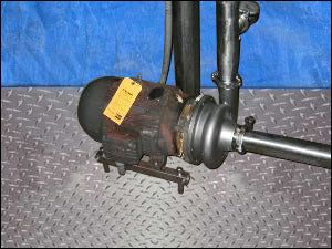 Bomba centrífuga Ampco. Acero inoxidable. Modelo 4x3 2CHZ. Entrada de 3 pulg., salida de 4 pulg. 25 hp, 3500 rpm, 575 voltios, 60 Hz, trifásico. Dimensiones 2 pies de largo, 1 pie de ancho, 2 pies de alto.