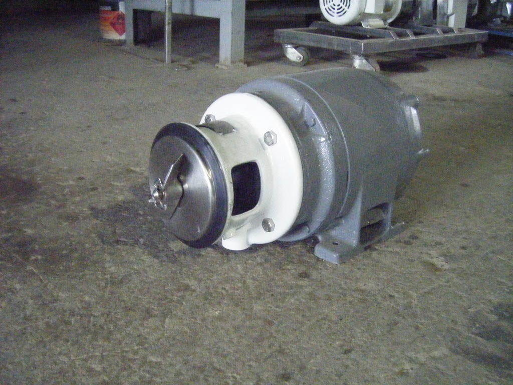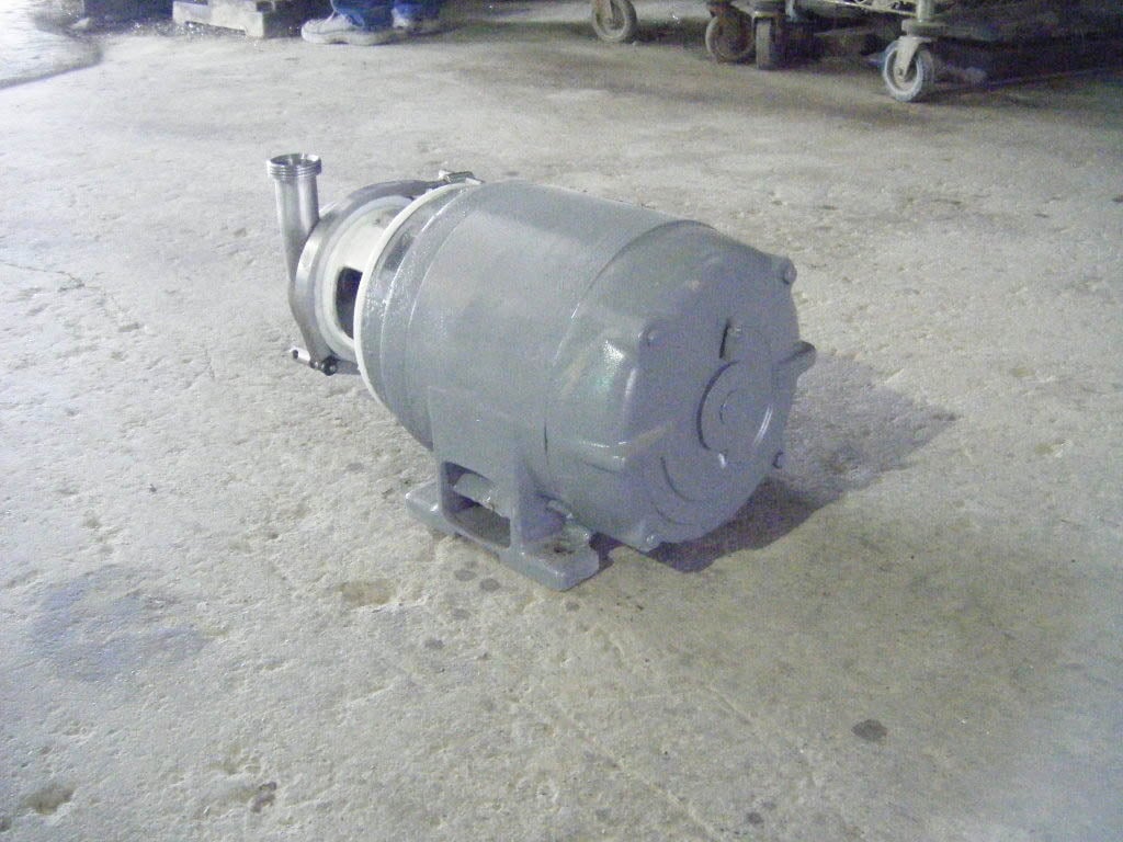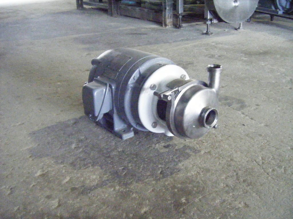 Bomba Centrífuga APV/Crepaco. Modelo: 6. S/N: 6-20672. El caudal de la bomba nueva es de 90 gpm con los caballos de fuerza y la presión requeridos. Discuta con el vendedor su proceso y producto para determinar si esta bomba debe cumplir con su tarea específica. Diámetro del impulsor: motor Louis Allis de 4-1/2 pulgadas, 3/1,5 hp, 3480/1710 rpm, 460 V, 3,7/3,25 amperios, 60 Hz, trifásico. Entrada: (1) conector ACME de 2 pulg. Salida: (1) conector ACME de 1-1/2 pulg. Dimensiones totales: 1 pie 9 pulgadas de largo x 1 pie 1-1/2 pulgadas de ancho x 11 pulgadas de alto (ACN26)
