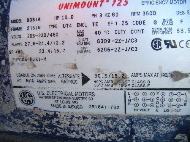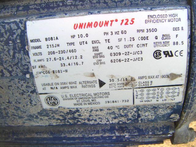 Bomba centrífuga Aurora. Modelo: 341-BF. Número de serie: AS99-24739. Capacidad: 500 gpm @ 65 tdh. Motor eléctrico estadounidense, 10 hp, 3500 rpm, 208-230/460 V, 27,6-24,4/12,2 amperios, 60 Hz, trifásico. Entradas/salidas: (2) 4 pulg. de diámetro. puerto embridado. Dimensiones totales: 2 pies 2 pulgadas de largo x 1 pie 4 pulgadas de ancho x 1 pie 6 pulgadas de alto (H9).