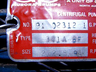 Bombas centrífugas Aurora. S/N: 91-02312 2. Tipo: 341A-BF. Tamaño: 2x2.5x9. Diámetro del impulsor: Motor eléctrico estadounidense de 7 pulg., 20 hp, 3525 rpm, 230/460 V, 49,8/24,9 FLA, 60 Hz, trifásico. Entradas: (1) 4 pulg. de diámetro. puerto embridado. Salidas: (1) 2 pulg. de diámetro. puerto embridado. Dimensiones totales: 2 pies 10 pulgadas de largo x 1 pie 8 pulgadas de ancho x 1 pie 1 pulgada de alto (H9).