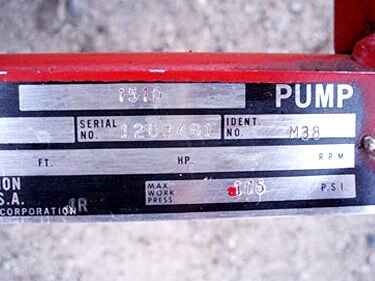 Bomba centrífuga Bell & Gossett serie 1510. Modelo: 11/4BC-75/8-BF. S/N: 1203461. Id. Número: M38. Capacidad: 35 gpm a 60 tdh. Diámetro del impulsor: 7-1/2 pulg. Presión máxima de trabajo: 175 psi. Entradas: (1) 1-1/2 pulg. de diámetro. puerto embridado. Salidas: (1) 1-1/4 pulg. de diámetro. puerto embridado. Dimensiones totales: 2 pies 7 pulgadas de largo x 1 pie 3 pulgadas de ancho x 2 pies 3 pulgadas de alto.