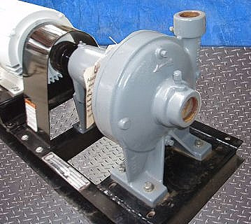 Bomba centrífuga Bell & Gossett serie 1510. Modelo 1510-1.25AC-6BF. S/N 1936638. Capacidad: 75 gpm a 180 tdh. Motor eléctrico Marathon, 7-1/2 hp, 3470 rpm, 208-230/460 V, 20-18/9 amperios, 60 Hz, trifásico. Las aplicaciones incluyen: sistemas hidrónicos de calefacción y refrigeración, aumento de presión industrial y aplicaciones de bombeo generales. Alta eficiencia, bajos costos operativos y fácil mantenimiento. Entradas: 1-1/2 pulg. de diámetro. FNPT. Salidas: (1) 1-1/4 pulg. de diámetro. FNPT. Dimensiones totales: 31 pulgadas de largo x 13-1/2 pulgadas de ancho x 15-1/2 pulgadas de alto.