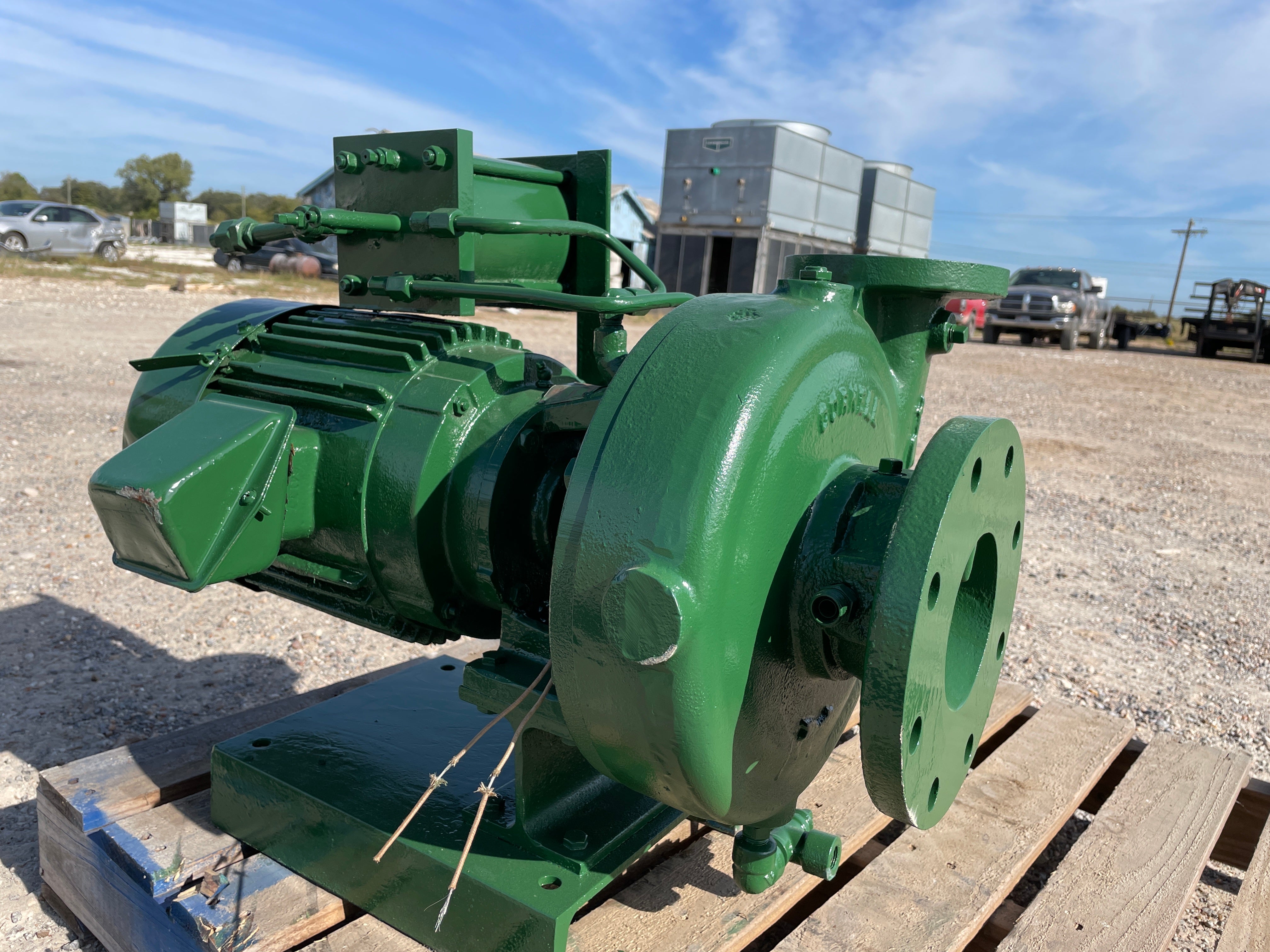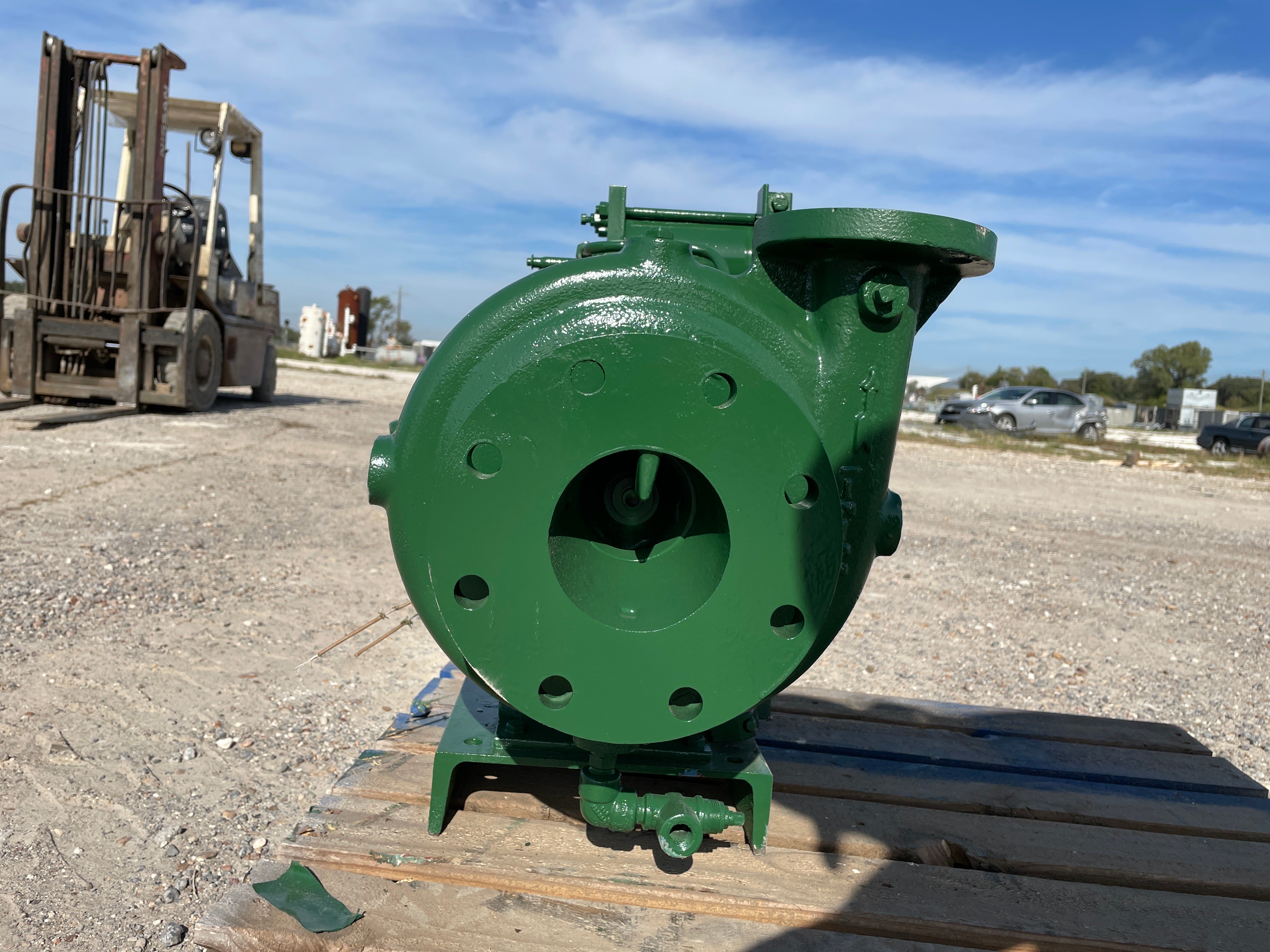 Bomba centrífuga de amoníaco Cornell. Modelo: 2CB-5-4, Serie: 35003. Descarga (pulg): 2. Succión (pulg): 4. Flujo mínimo: 40 GPM, Flujo máximo: 200 GPM, Manejo de sólidos (pulg): . 37, velocidad máxima (RPM): 1800. Material estándar de hierro fundido. Falta placa de datos de la bomba. La bomba ha sido repintada. Hnadles Sólidos de hasta 3/8 pulgadas.