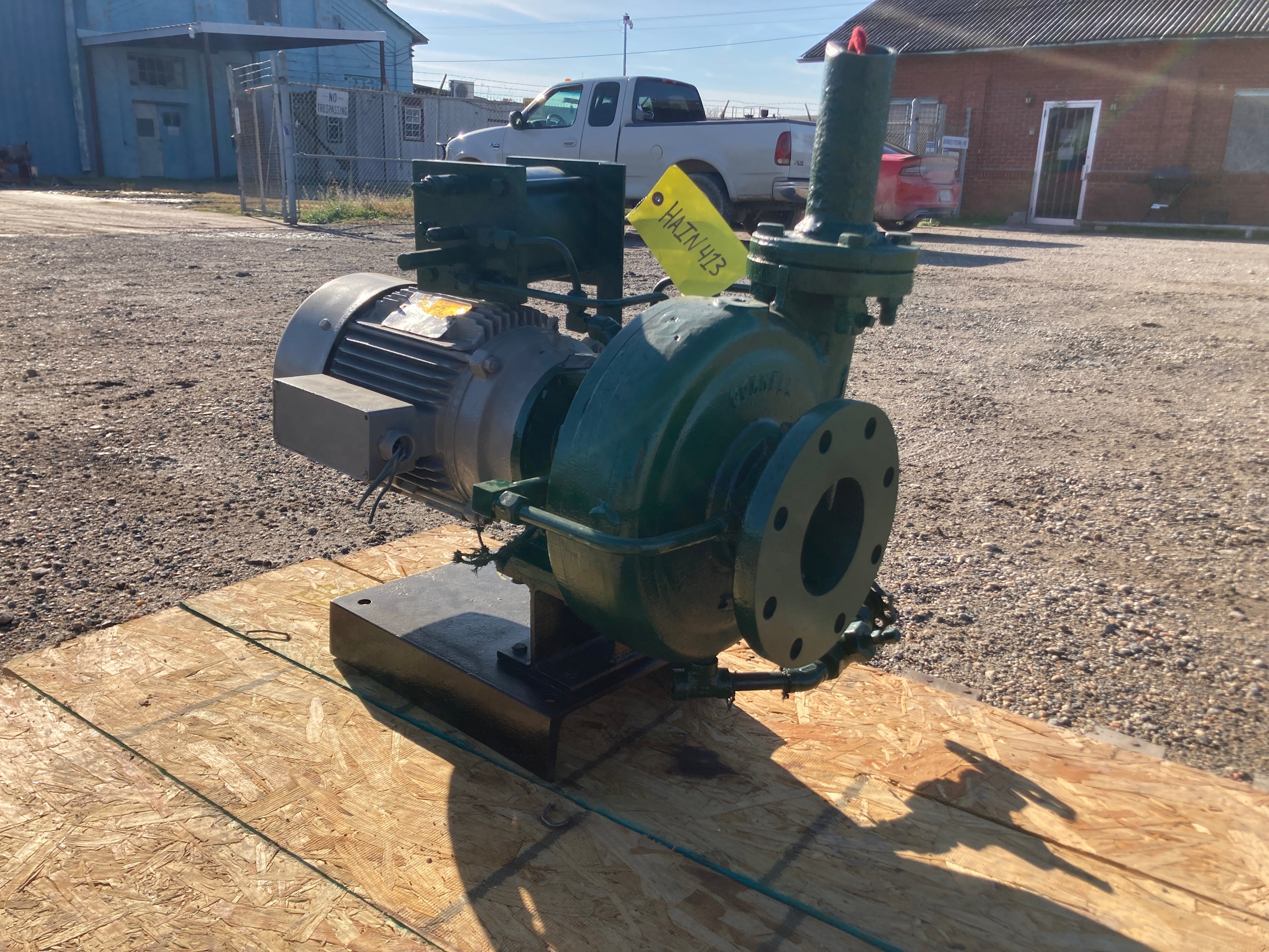 Bomba centrífuga Cornell serie CB - Modelo: 2CB5-4, número de serie: 32003 10. Flujo mínimo GPM: 40, flujo máximo GPM: 200. Tamaño de descarga (pulg.): 2, Tamaño de succión (pulg): 4. Manejo de sólidos (pulg. ): .37. RPM máximas: 1800. Presión máxima de trabajo: 250 PSIG. Motor Baldor: motor de 5 HP, voltios: 230/460, amperios: 14,2/7,1, rpm: 1745, bastidor: 184JP. Utilizado anteriormente en un recirculador con amoníaco. Ha sido reformado con pintura nueva.