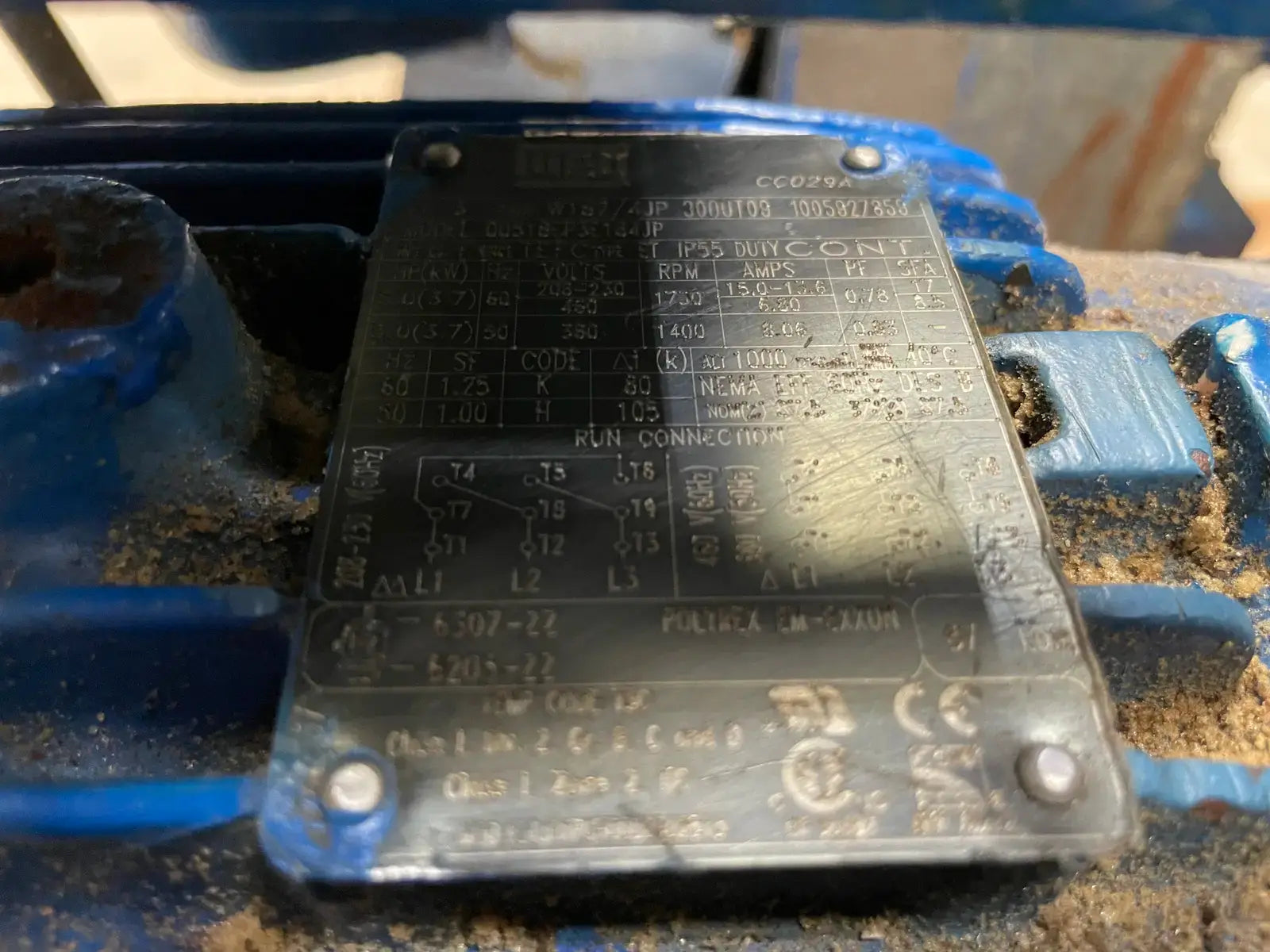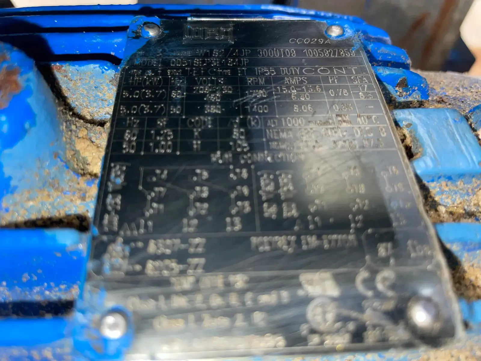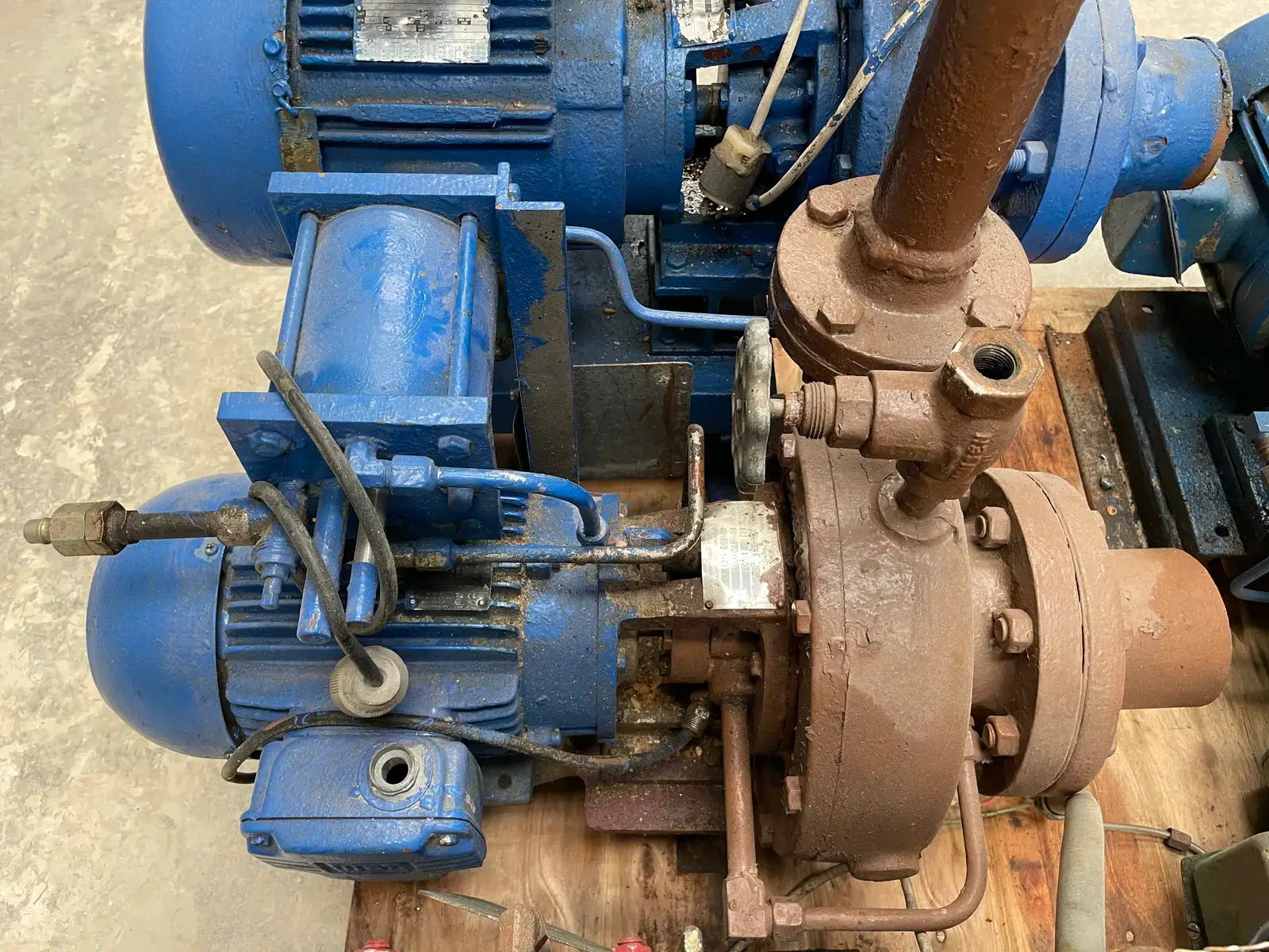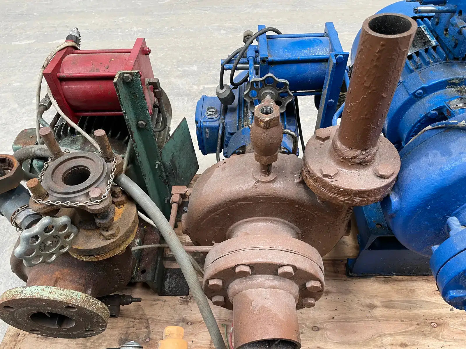 Bomba centrífuga de amoníaco Cornell. Modelo: 2CBS-5-4, Serie: 113721 10.09. Descarga (pulg.): 2. Succión (pulg.): 4. Flujo mínimo: 50 GPM, flujo máximo: 200 GPM, velocidad máxima (RPM): 1800. Material estándar de hierro fundido. Utilizado anteriormente con amoníaco R-717
