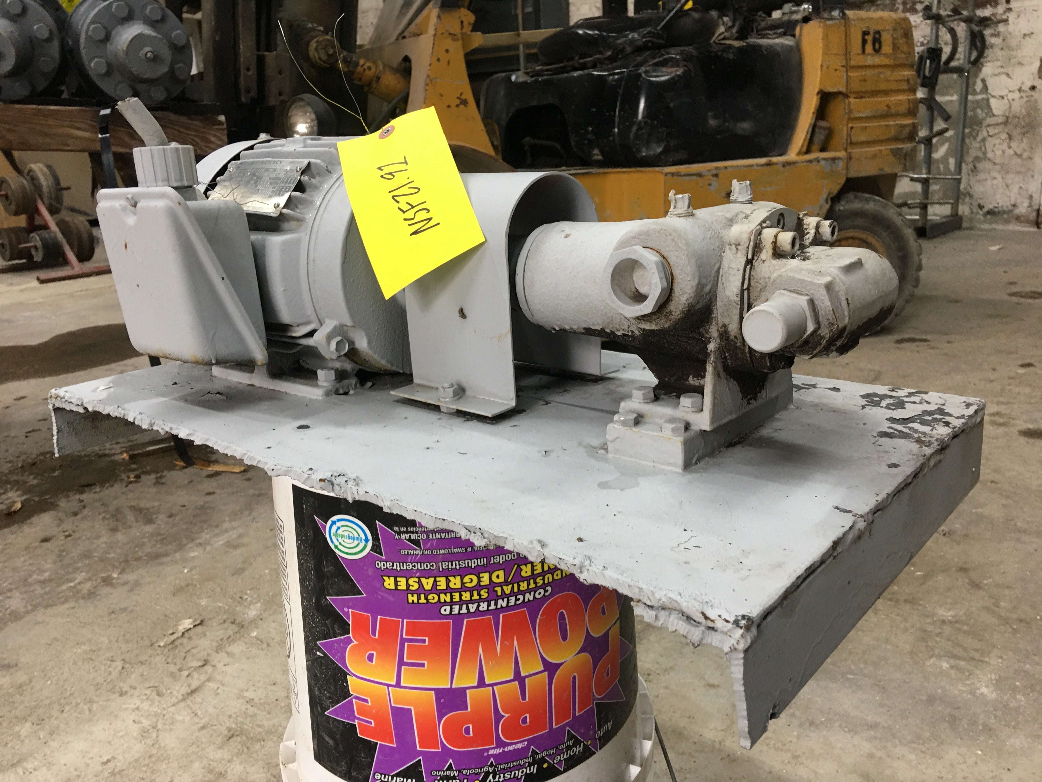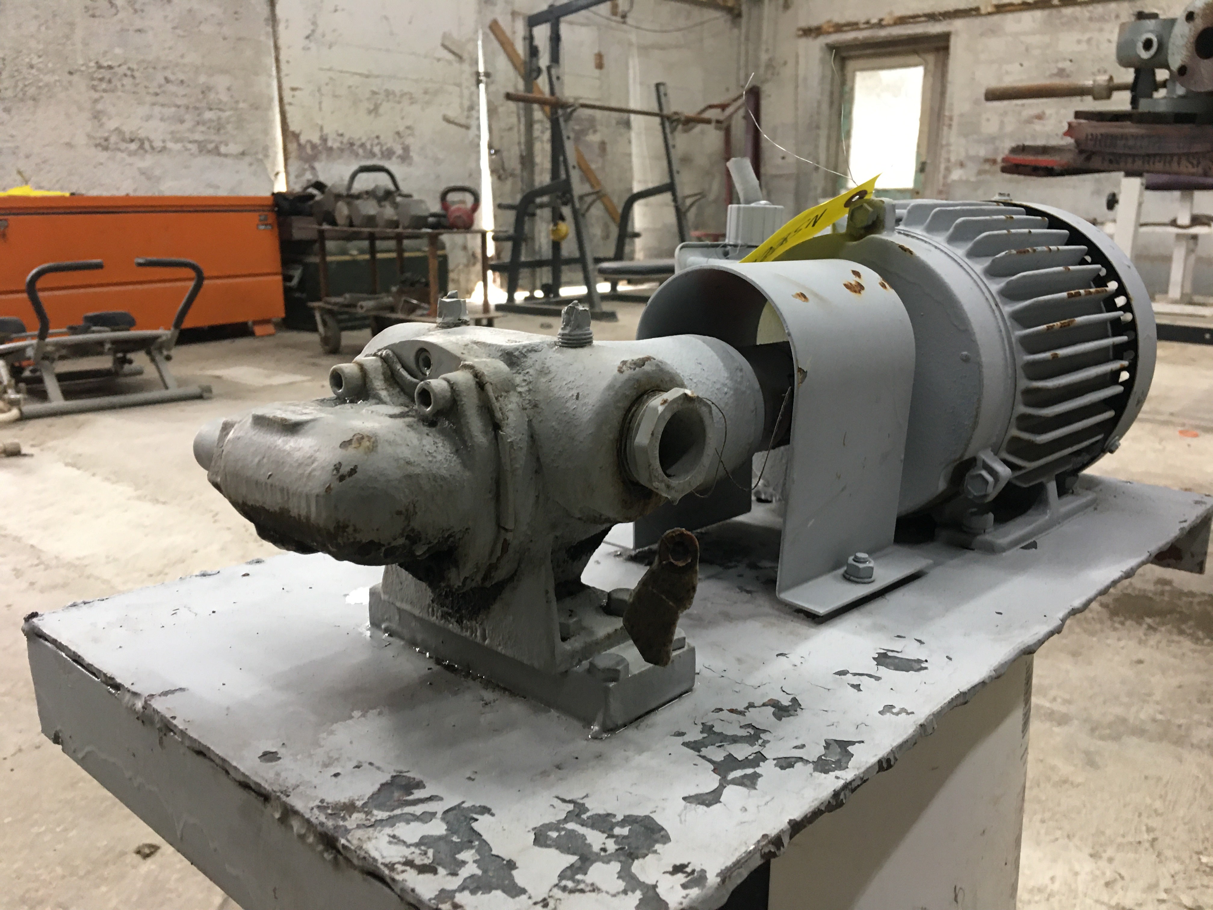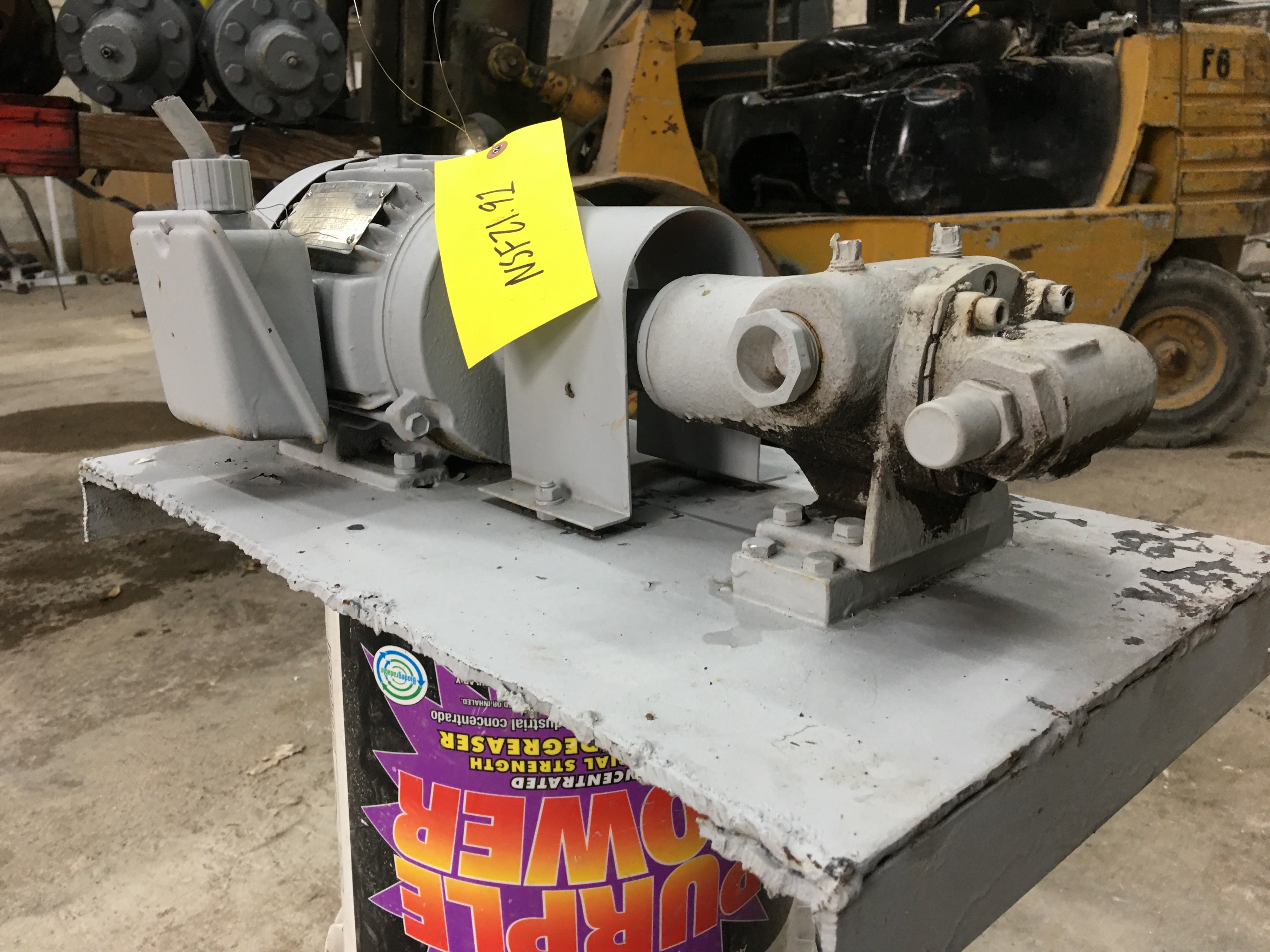 Bomba de engranajes rotativos: le falta la placa de identificación. Puerto de succión (pulg): 2, Puerto de descarga (pulg): 2. Motor Toshiba de alta eficiencia: HP: 1 1/2, Tipo: IN, Voltios: 230/460, Hz; 60, Forma: PBK1, Rpm: 1725, Fr: 145T. Motor Toshiba de alta eficiencia: N.º de modelo: BY154F1FAK, ENCL: TEFC, Hp: 1 1/2, Tipo: IN, Voltios: 230/460, Hz; 60, Forma: PBK1, Rpm: 1725, Fr: 145T, Servicio: CONT, Número de serie: 99007343, Amb máx.: 40c, Ef nom: 80c, utilizable en redes de 208 V a 4,8 amperios. Polos: 4, Clase Ins: F, Nema Des: B, Código: K, Sp: 1.15.