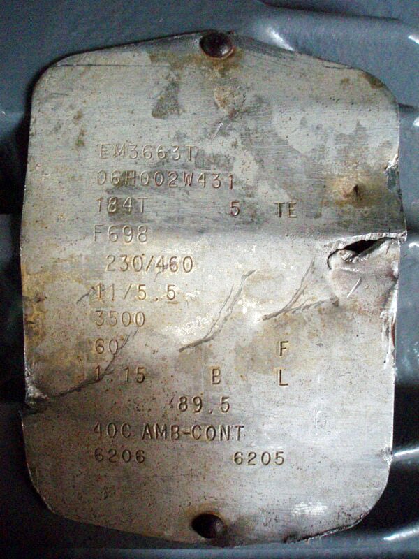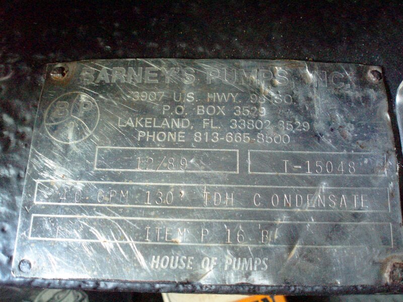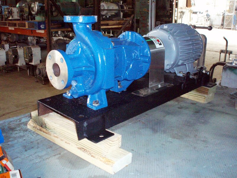 Bomba centrífuga Ingersoll-Dresser. Número de serie: 0999-7470-A HOC3+. Tamaño: 1.5x1x6. El caudal de la bomba nueva es de 150 gpm con los caballos de fuerza y la presión requeridos. *Nota: Falta el impulsor. Motor Baldor, 5 hp, 3500 rpm, 11/5.5 amperios, 60 Hz, trifásico. Entrada: puerto de brida de 1-1/2 pulg. Salida: puerto de brida de 1 pulg. Diámetro de brida (entrada/salida): 5-1/2 / 4-3/4 pulg. (4) orificios de montaje de 5/8 pulg. Dimensiones totales: 2 pies 11 pulgadas de largo x 1 pie. 2-1/2 pulgadas de ancho x 1 pie 2-1/2 pulgadas de alto (ACN42).