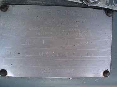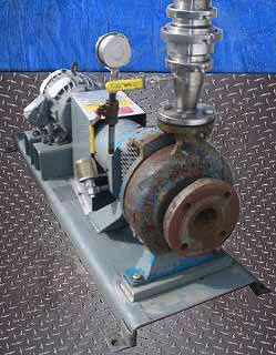 Bomba centrífuga Ingersoll-Dresser. Modelo: D1012. Tamaño: 3x1.5x8. El caudal de la bomba nueva es de 115 gpm con los caballos de fuerza y la presión requeridos. Discuta con el vendedor su proceso y producto para determinar si esta bomba debe cumplir con su tarea específica. Motor eléctrico Baldor, 3 hp, 1760 rpm, 230/460 V, 8/4 amperios, 60 Hz, trifásico. Entrada: (1) 3 pulg. de diámetro. puerto embridado. Salida: (1) 3 pulg. de diámetro. Línea S. Dimensiones totales: 4 pies 4 pulgadas de largo x 1 pie 7 pulgadas de ancho x 2 pies 10 pulgadas de alto (ACN48)(H9/5I).
