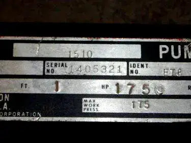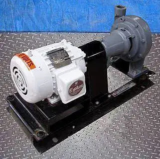 Bomba centrífuga Bell & Gossett serie 1510, modelo: 1-1/4AC. S/N: 1405321. Capacidad: 70 gpm a 25 tdh. Motor Century E-Plus, 1,0 hp, 1745 rpm, 230/460 V, 2,7/1,35 amperios. Las aplicaciones incluyen: sistemas hidrónicos de calefacción y refrigeración, aumento de presión industrial y aplicaciones de bombeo generales. Alta eficiencia, bajos costos operativos y fácil mantenimiento. Entradas: (1) 1-1/2 pulg. de diámetro. TNP (macho). Salidas: (1) 1-1/4 pulg. de diámetro. TNP (hembra). Dimensiones totales: 28-1/2 pulgadas de largo x 12 pulgadas de ancho x 17 pulgadas de alto.