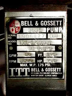 Bomba centrífuga ITT Bell & Gossett 1x1-1/2X6QT (7,5 HP, 100 GPM máx.)