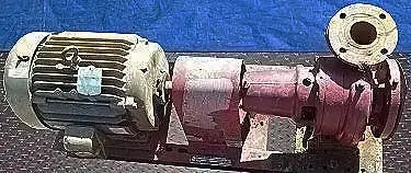 Bomba centrífuga Bell & Gossett. S/N: 2113757. Capacidad: 624 gpm @ 100 tdh. Velocidad máxima: 3500 rpm. Diámetro del impulsor: 3 pulg. Código de construcción de la bomba: AB. Motor Baldor Super-E, 20 hp, 3525 rpm, 200 V, 52,9 amperios, 60 Hz, trifásico. Entradas: (1) 3-1/2 pulg. de diámetro. Puerto de succión con 8 pernos y 9 pulgadas de diámetro. brida. Salidas: (1) 3 pulg. de diámetro. puerto de descarga con 4 pernos, 7-1/2 pulg. de diámetro. brida. Dimensión global. 46-1/2 pulgadas de largo x 17 pulgadas de ancho x 22-1/2 pulgadas de alto (H9).