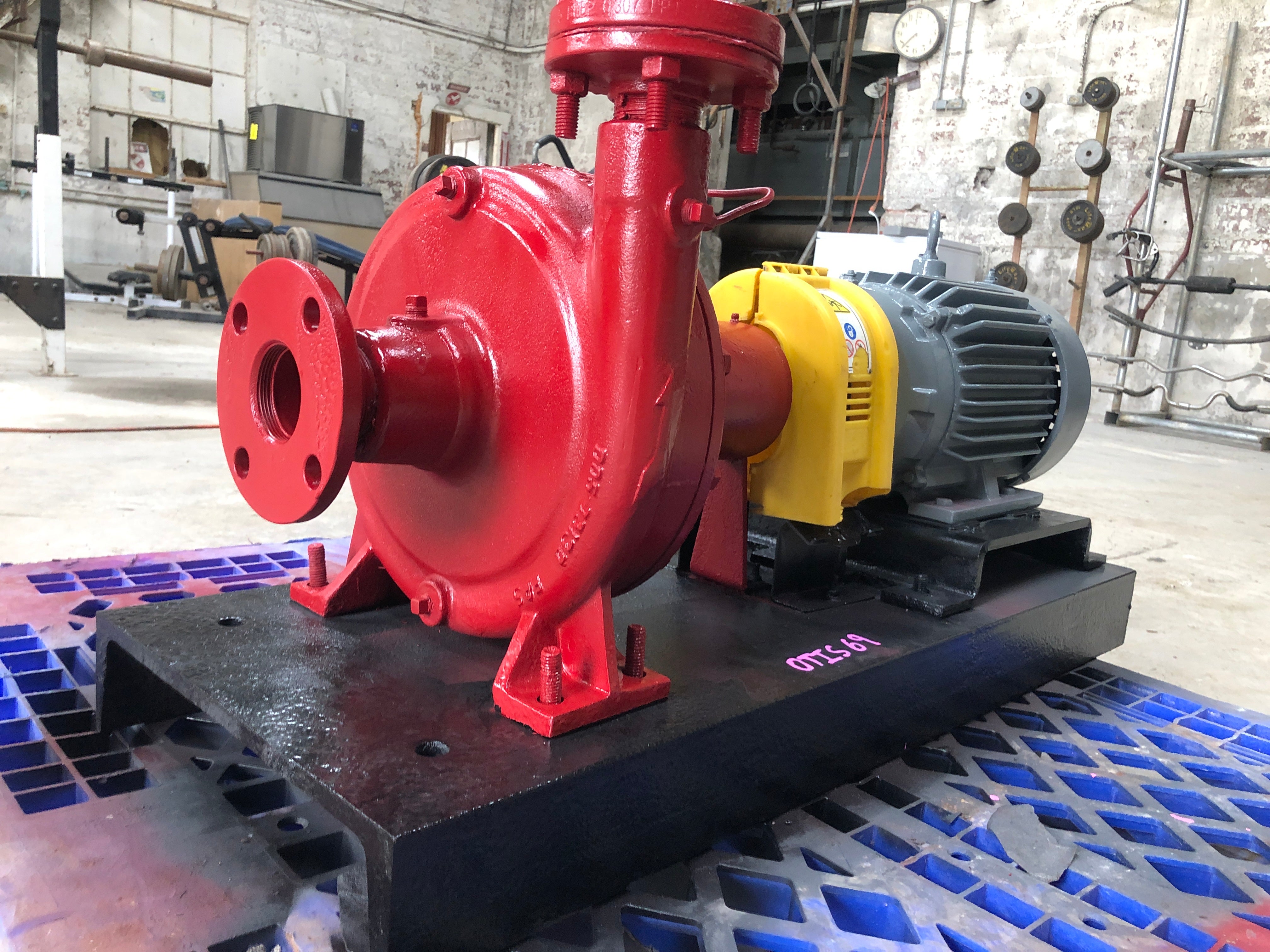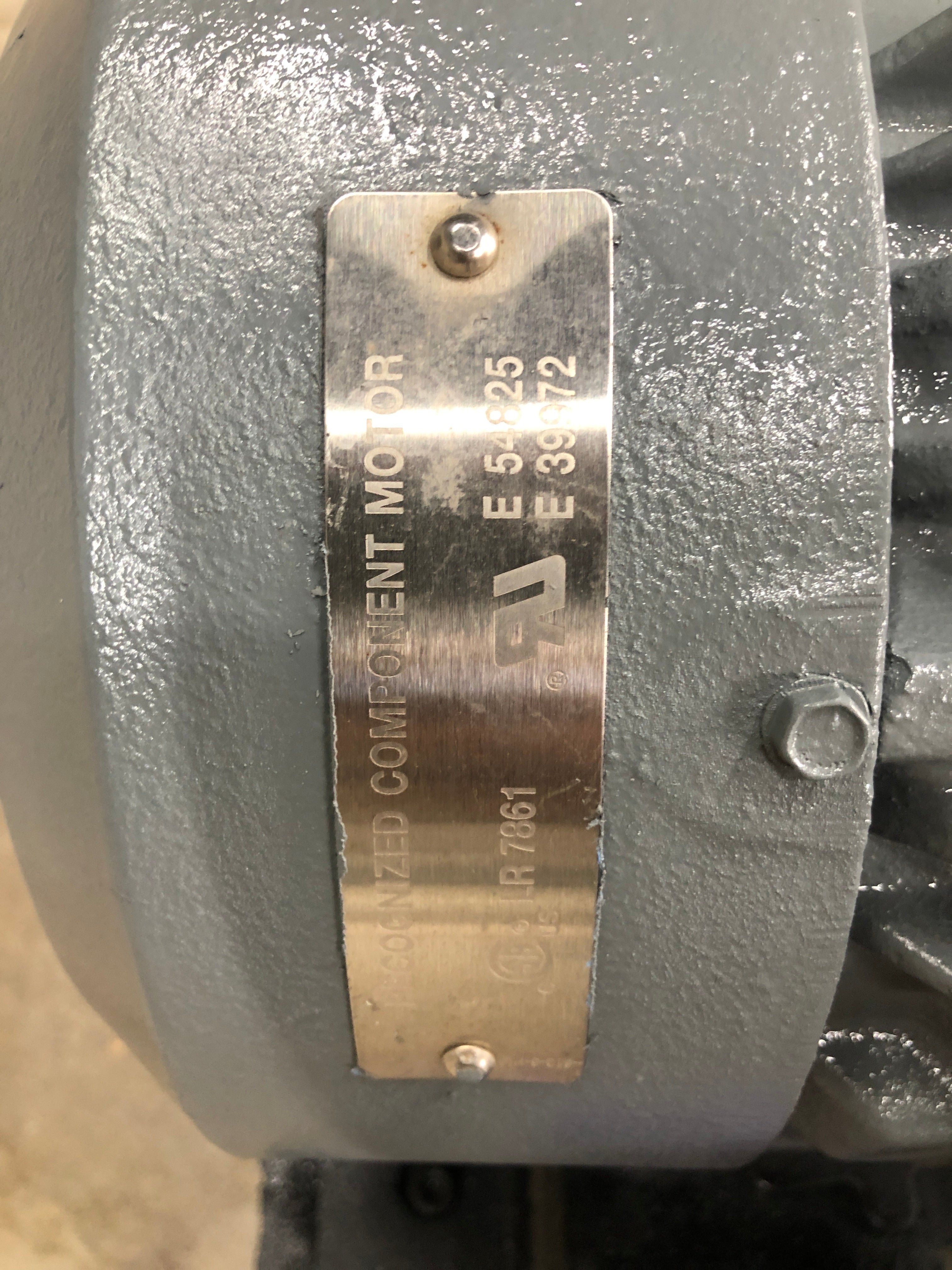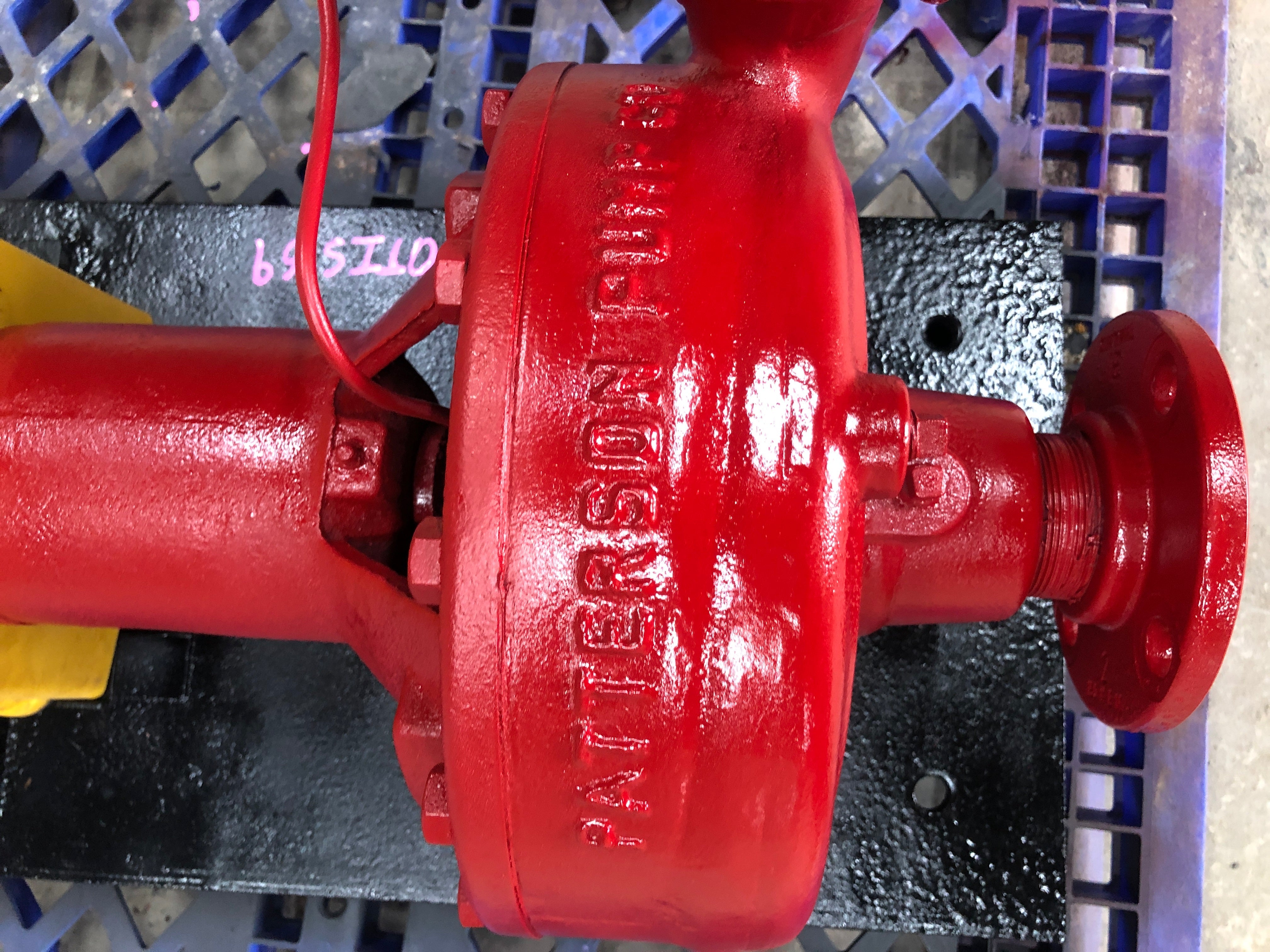 Bomba centrífuga HVAC de succión final Patterson. La bomba ha sido repintada. Motor industrial Baldor - HP: 3, AMPS: 4.2, Tamaño del marco: L183T, RPM: 1760, Voltios: 460, Hz: 60.