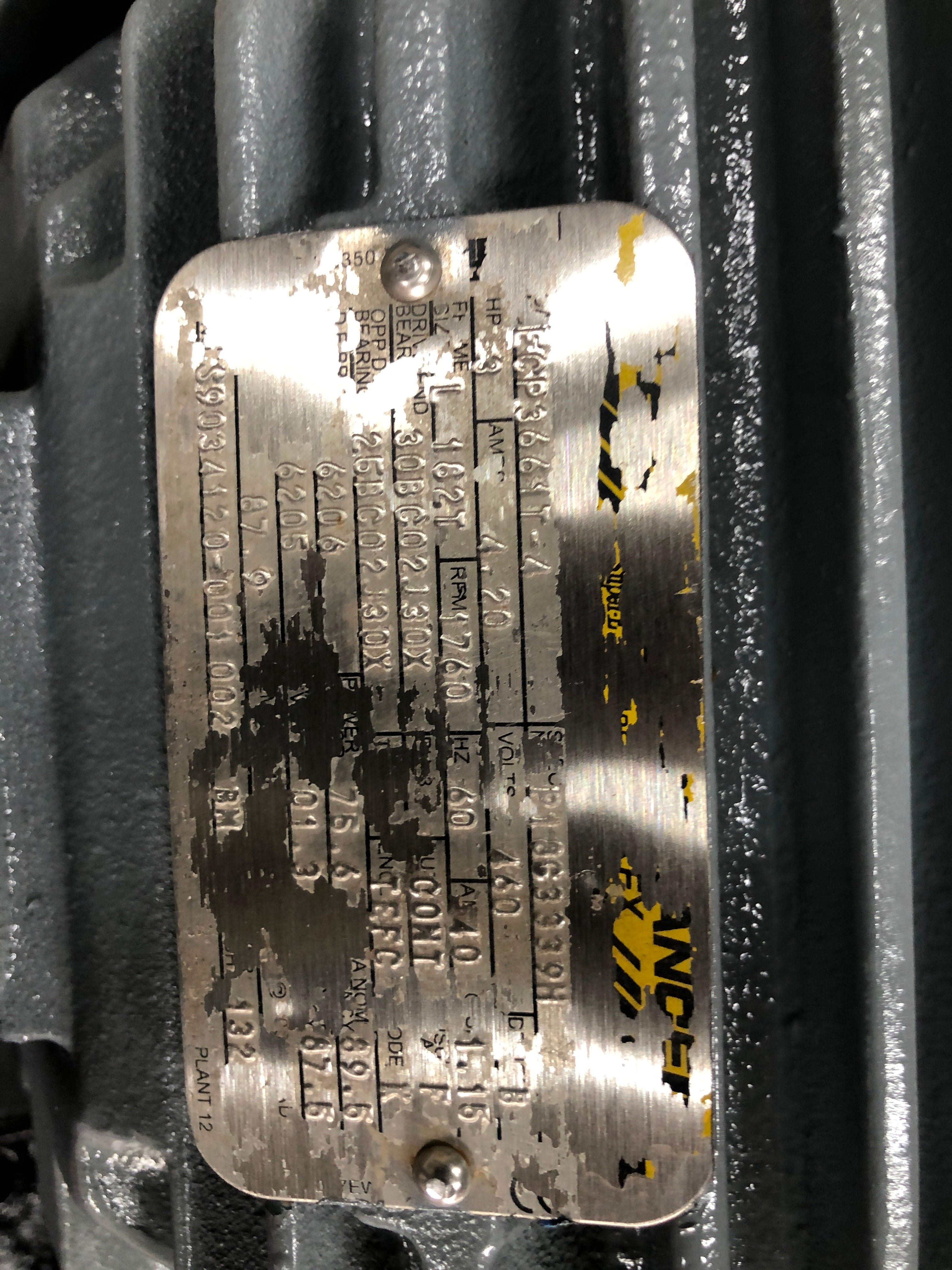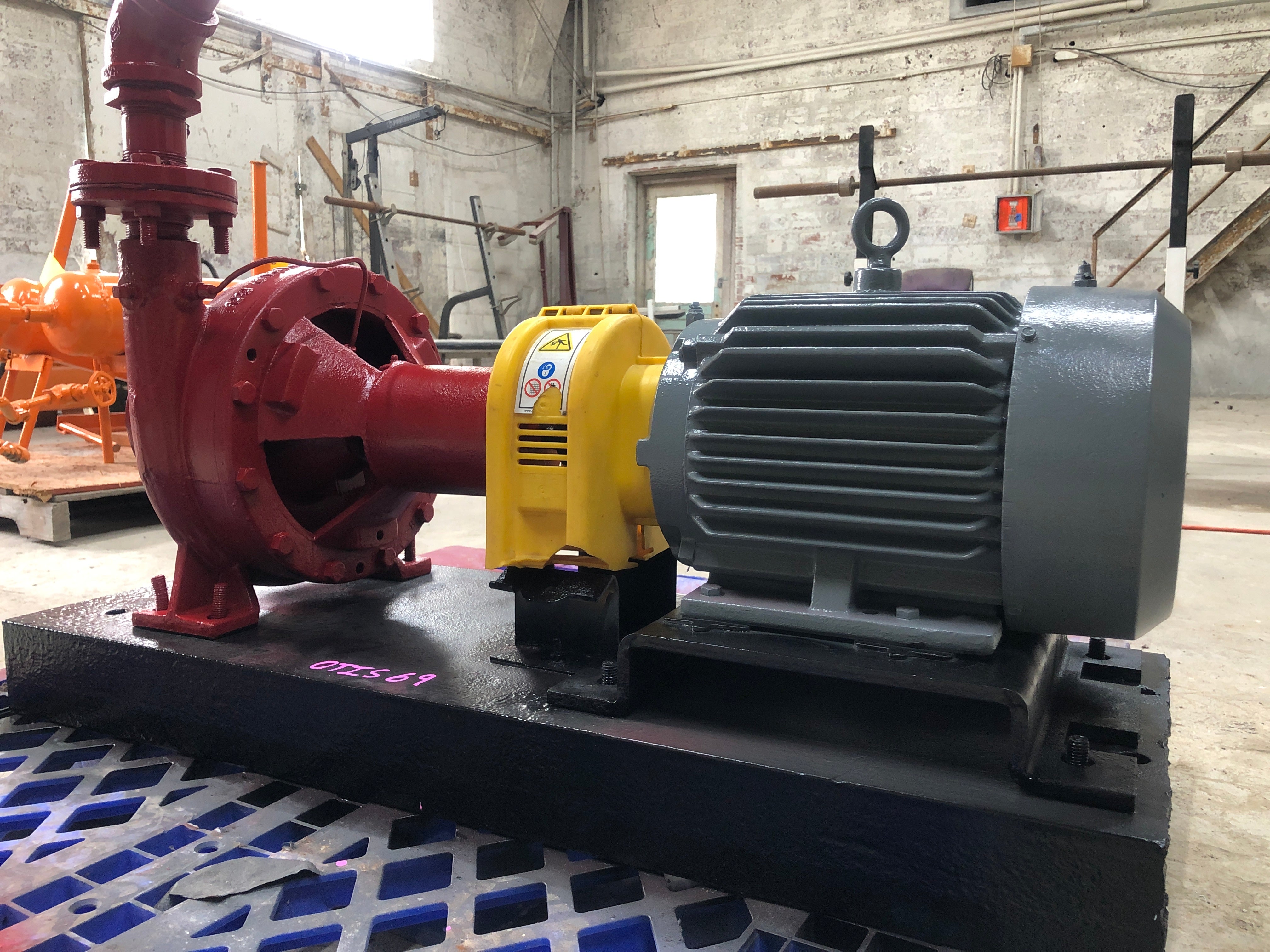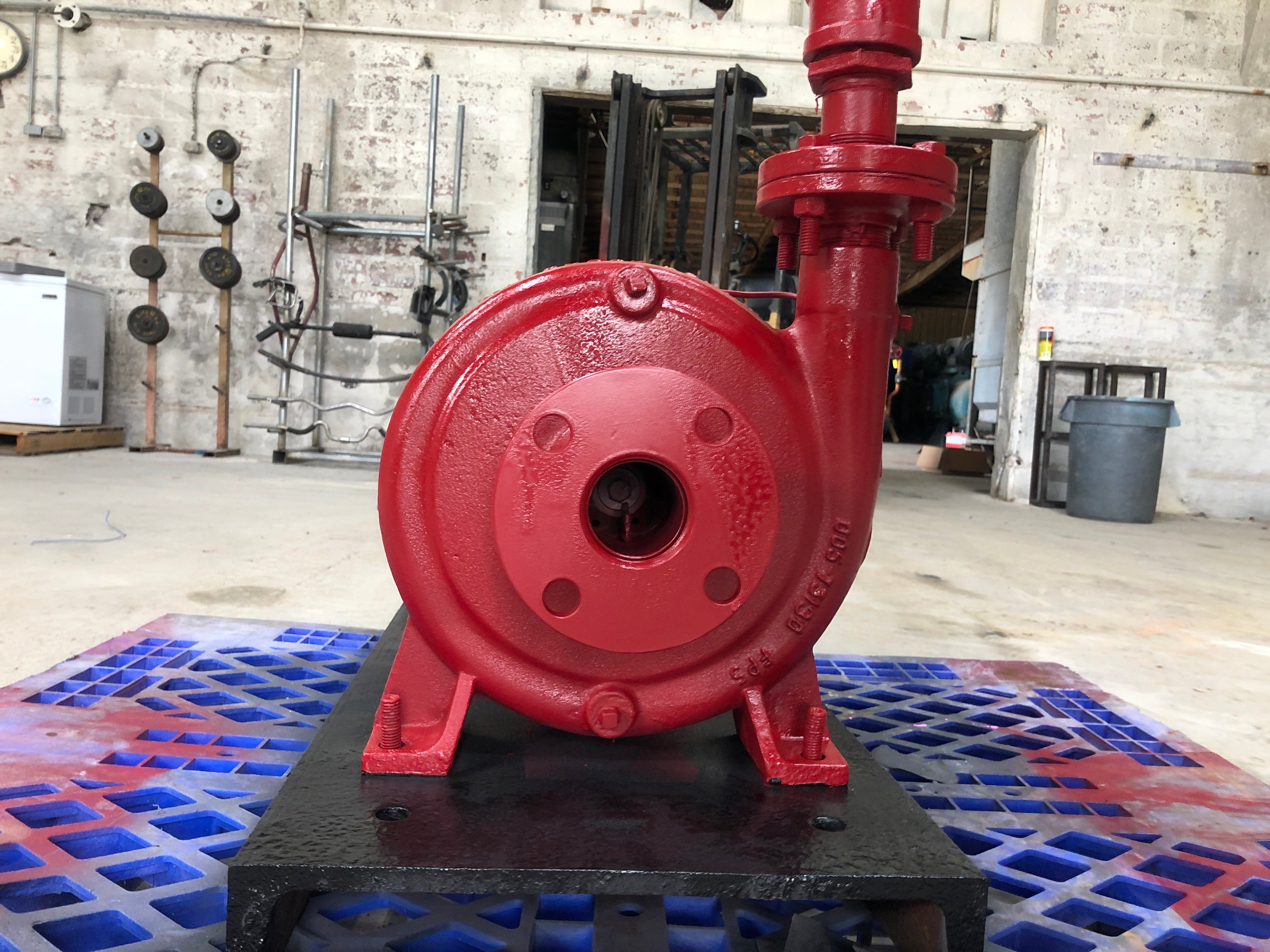 Bomba centrífuga HVAC de succión final Patterson. La bomba ha sido repintada. Motor industrial Baldor - HP: 3, AMPS: 4.2, Tamaño del marco: L183T, RPM: 1760, Voltios: 460, Hz: 60.