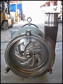 Bomba centrífuga sanitaria Fristam serie FPX. Modelo: FPX 3532. S/N: 353268129. Capacidad: 180 gpm @ 90 tdh (39 psi usando gravedad específica de agua = 1). Desplazamiento por revolución: 0,057. Componentes interiores de acero inoxidable 316. Opción de sello: mecánico simple, óxido de cromo/carbono. Diámetro del impulsor: 5 pulg. (130 mm). Motor industrial Baldor, 7 ½ hp, 3450 rpm, 208-230/460 V, 18,5-17,4/8,7 amperios, 60 Hz, trifásico. La bomba centrífuga sanitaria serie FPX se ha convertido en un estándar de la industria para la mayoría de las aplicaciones generales. Capaz de entregar grandes volúmenes y altas presiones mientras maneja productos sensibles al corte, es la bomba elegida para productos con viscosidades de hasta 600 cps y temperaturas de proceso de hasta 400 °F. La serie FPX es conocida por sus operaciones silenciosas, eficientes y de bajo mantenimiento. Aplicaciones típicas: embotellado, aplicaciones de limpieza/CIP, desalcoholización, destilación, emulsificación, evaporación, separación mecánica, ósmosis inversa, mezcla en línea, acondicionamiento de agua, filtración por transferencia, extracción, dosificación, diálisis, desgasificación, carbonización, homogeneización. , fermentación. Entrada: (1) 2 ½ pulg. de diámetro. Accesorios de línea S. Salida: (1) 2 pulg. de diámetro. Accesorios de línea S. Dimensiones totales: 2 pies 4 pulgadas de largo x 1 pie 3 pulgadas de ancho x 11 pulgadas de alto (ACN30).
