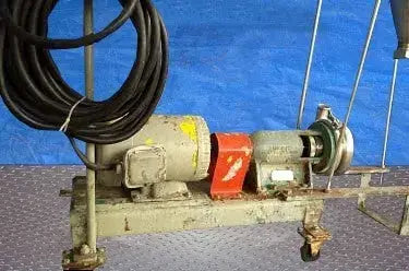 Bomba centrífuga Tri Clover. Modelo SP216ME.00A.S, N/S G4018. Alimentador de cono de acero inoxidable en marco, el cono mide 22 pulgadas de diámetro. en la parte superior con (1) abrazadera triple de 3/4 pulg. en la parte inferior, altura del embudo 29 pulg.