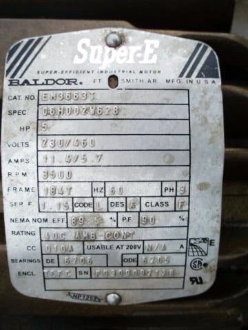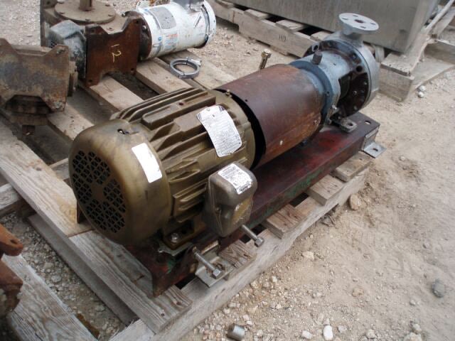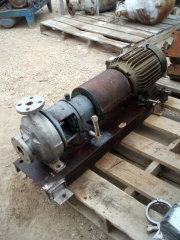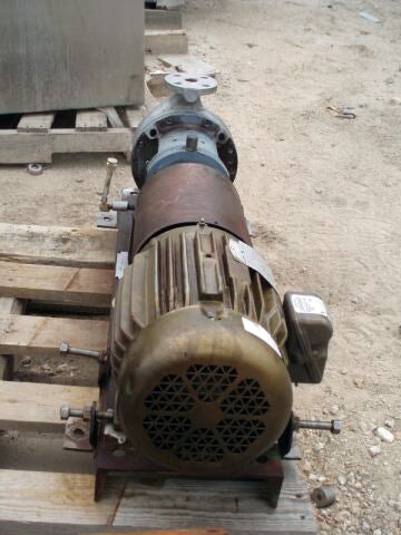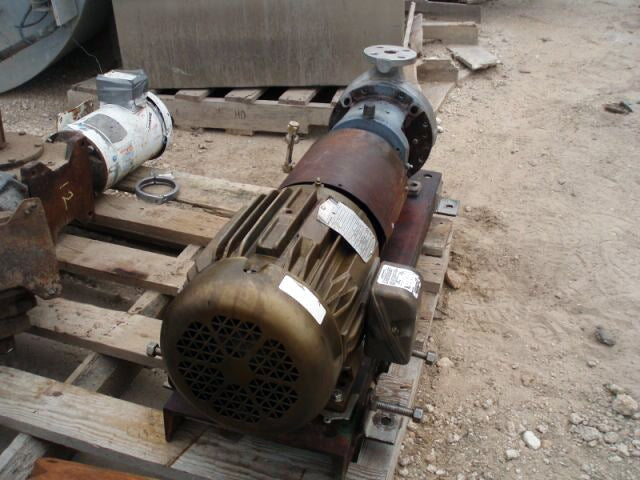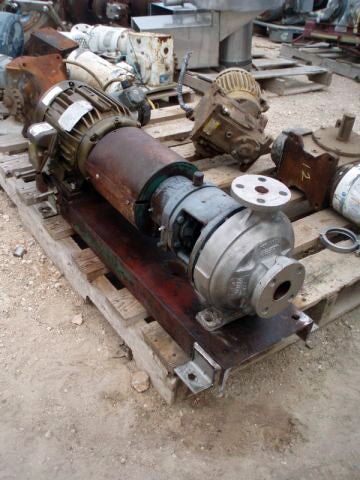 Bomba centrífuga Worthington Dresser. Diámetro del impulsor: Motor industrial Baldor de 5 pulgadas: 5 hp, 3500 rpm, 230/460 V, 11,4/5,7 amperios, 60 Hz, trifásico. Entradas: (1) 1-1/2 pulg. de diámetro. Puertos bridados. Salidas: (1) 1 pulg. de diámetro. puerto embridado. Dimensiones totales: 3 pies de largo x 1 pie 3 pulgadas de ancho x 1 pie 3 pulgadas de alto.