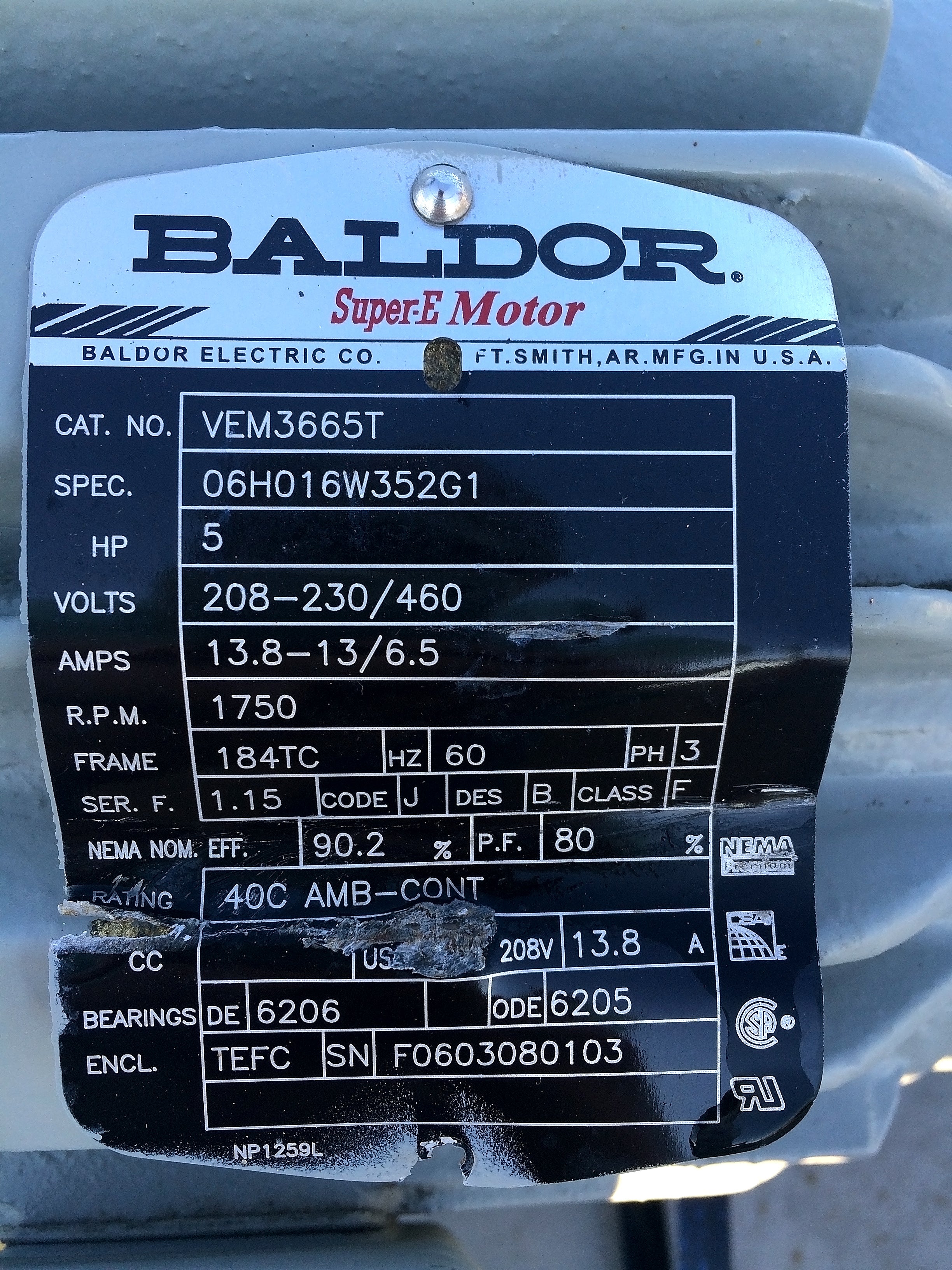- Fabricante de motores: Baldor