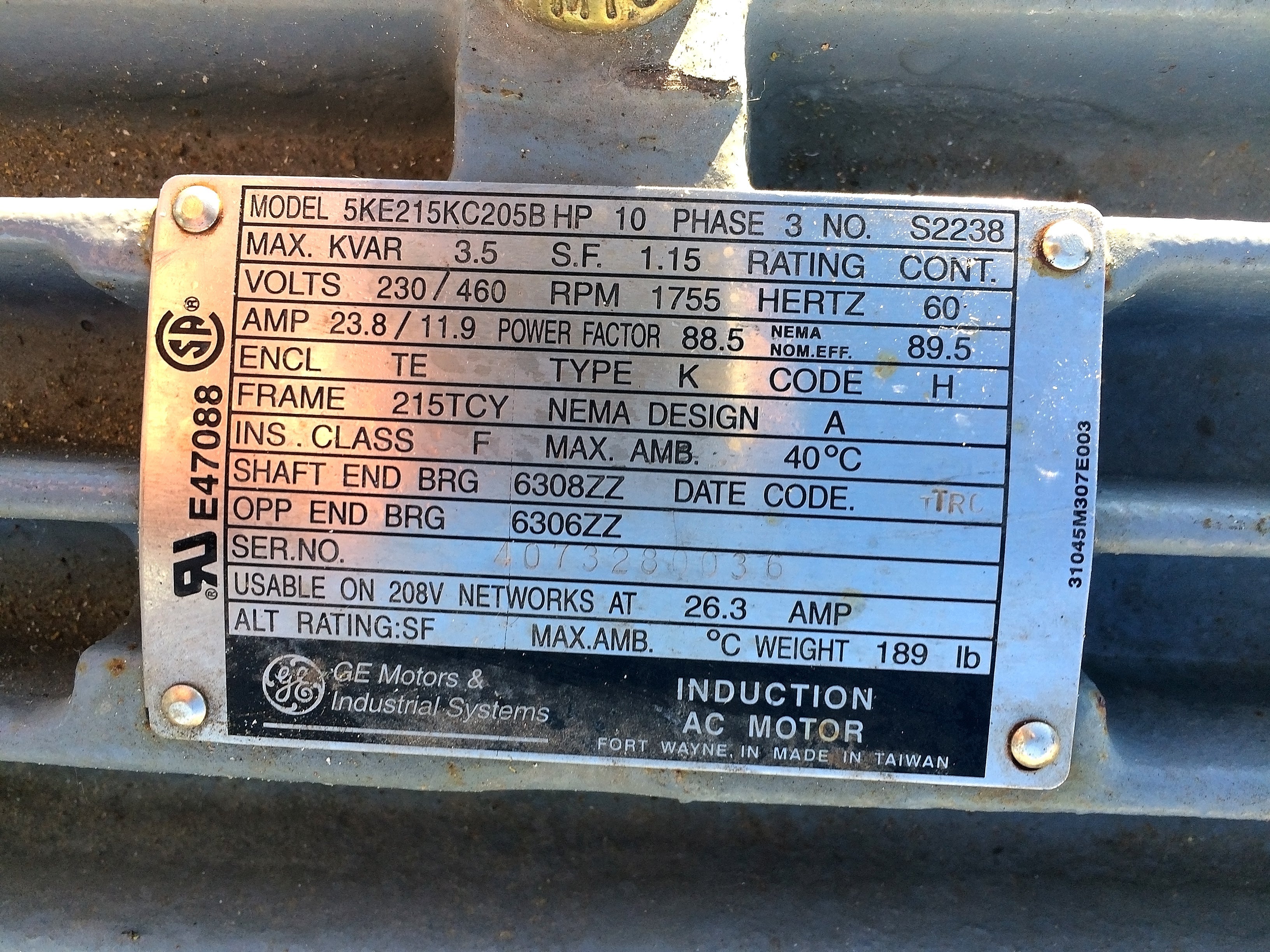- Voltaje del motor: 208-230/460