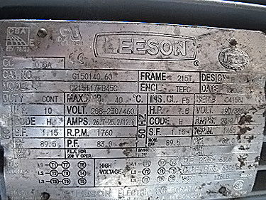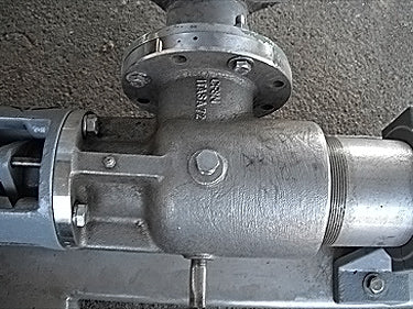 Bomba de cavidad progresiva y tolva de alimentación Moyno. Tipo: CDO. Cuadro: IL8. Número de serie: A-8032-I. Caudal estimado para el modelo 1L8: 80-90 gpm a 87 PSI con HP/RPM adecuados. Motor: Leeson 10HP, 208-230/460V, 60Hz, trifásico (7.5HP, 190/380V, 50Hz, trifásico). Factor de servicio: 1,15. Cuadro: 215T. Caja: TEFC. Fecha: K2004. Diámetro del sinfín: 4 pulg. Dimensiones de entrada/salida de la bomba: 4 pulg. / 3 pulg. (E)