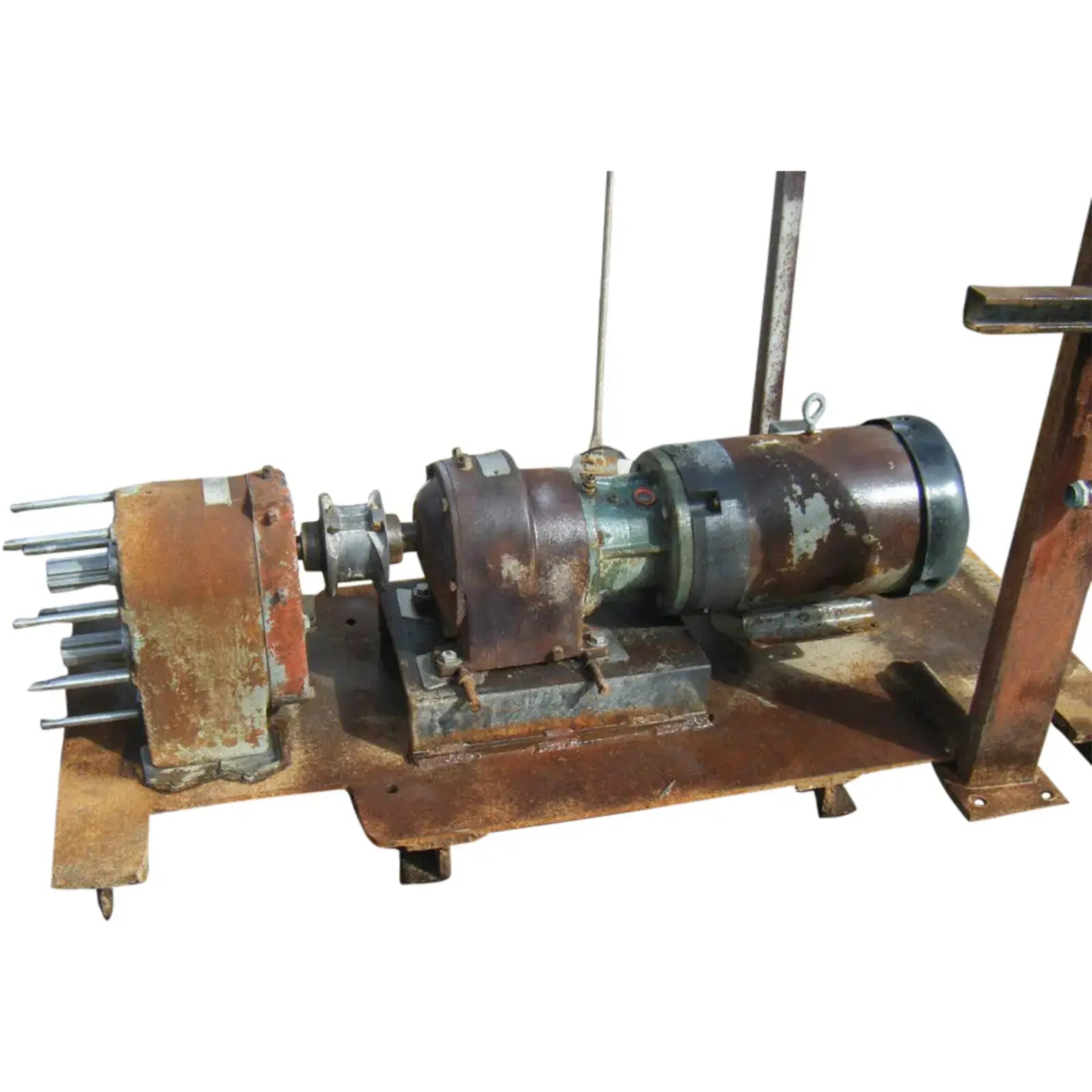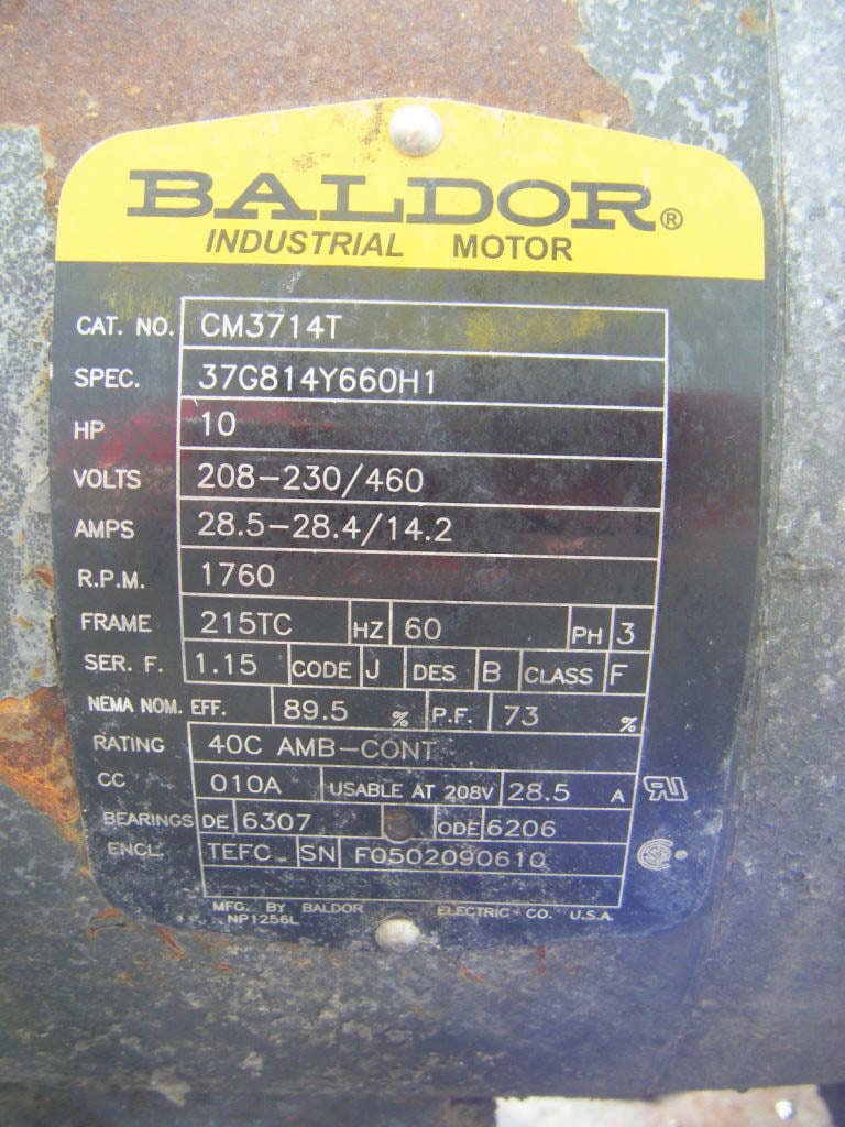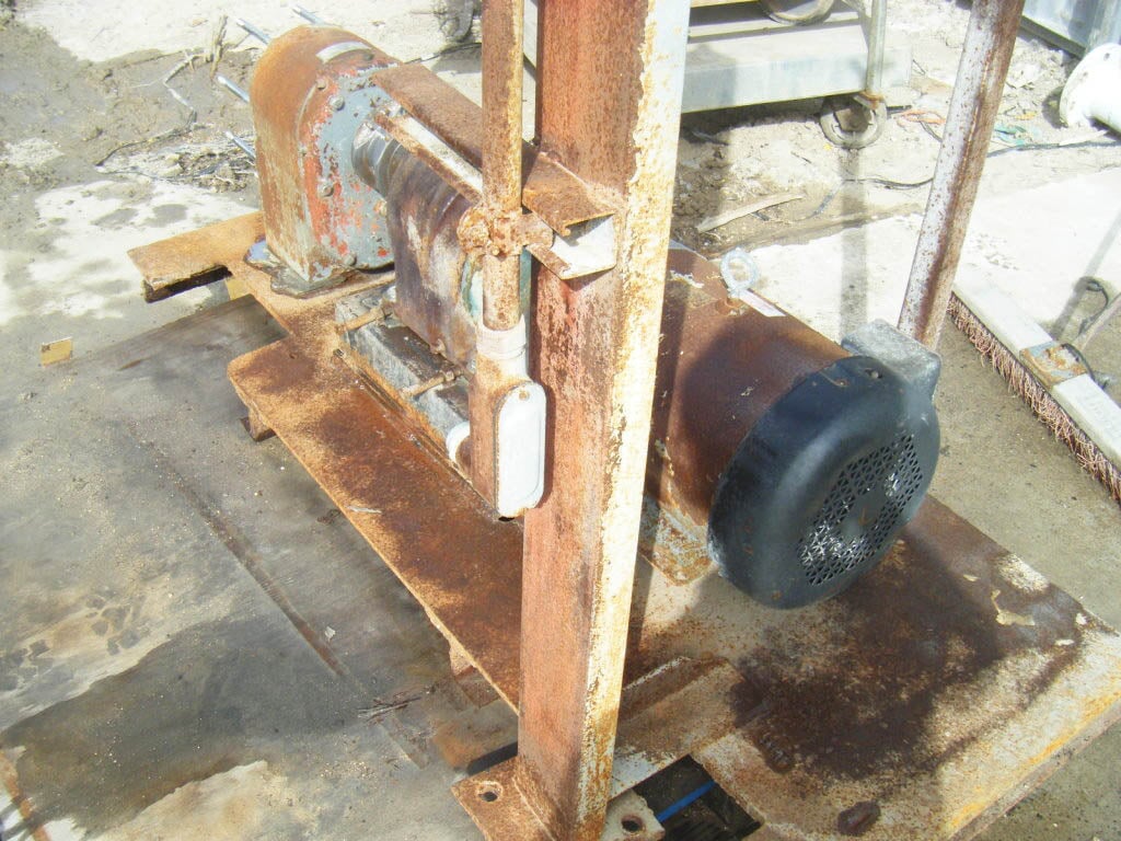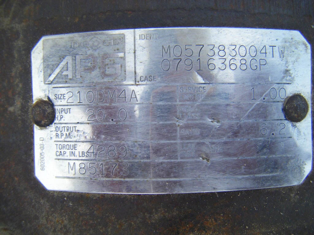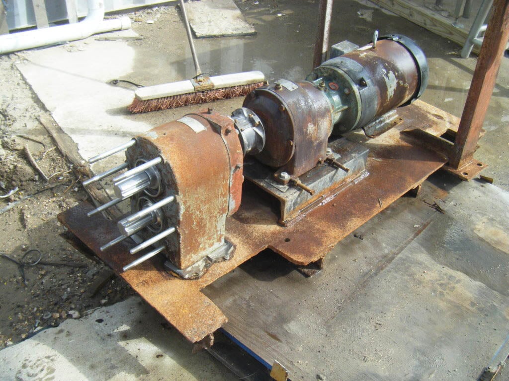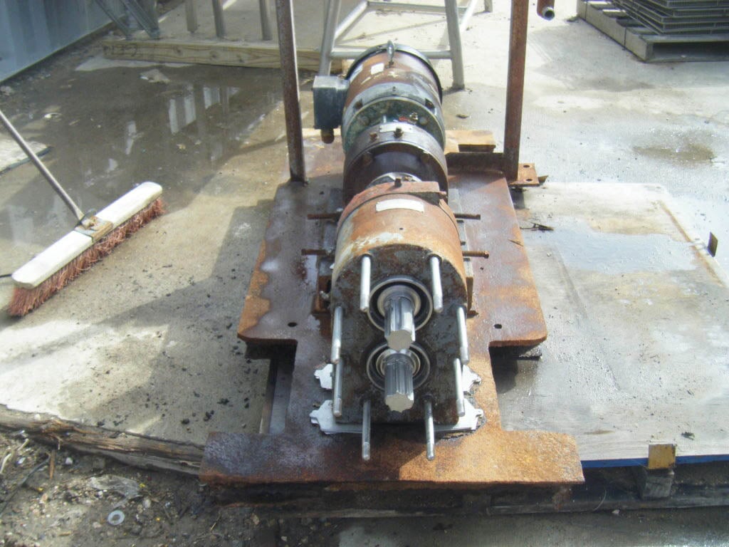 Bomba de desplazamiento positivo Tri-Clover. Modelo: PR125-3-UC4-ST-S. El caudal de la bomba nueva es de 120 gpm con los caballos de fuerza y la presión requeridos. Discuta con el vendedor su proceso y producto para determinar si esta bomba debe cumplir con su tarea específica. Motor Eléctrico Baldor: 10 Hp, 1760 Rpm, 208-230/460 V, 28.5-28.4/14.2 A, 60 Hz, Trifásico. Transmisión APG: 20,0 caballos de fuerza de entrada, relación 6,2, torque 4289. Dimensiones totales: 5 pies de largo x 2 pies de ancho x 5 pies 2-1/8 pulgadas de alto (ACN171).