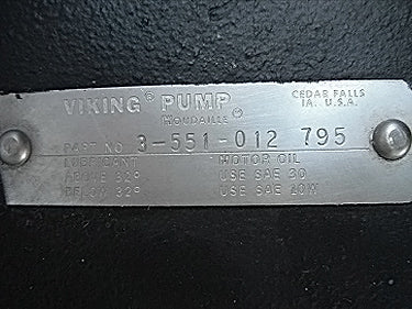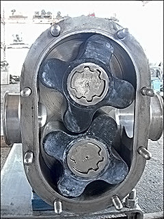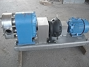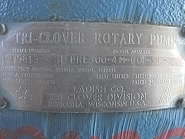 Bomba de desplazamiento positivo Tri Clover PRE 300. Modelo: PRE300-4M-VC4-SL-S. Número de serie: V9813. Puertos: Accesorios Tri-clamp de 4 pulgadas. El caudal de una bomba nueva es de 300 gpm a rpm máximas de 500. Analice con el vendedor su proceso y producto para determinar si esta bomba debe cumplir con su tarea específica. La bomba tiene sellos mecánicos. La unidad se puede cambiar para adaptarla a su aplicación. Motor Reliance: 10 hp, 1755 rpm, 230/460 V, 27,0/13,5 amperios, 60 Hz, trifásico. Reductor de engranajes helicoidales Viking: relación de 7,95, salida de 220 rpm, número de pieza: 3-551-012-795, tamaño C. Dimensiones totales: 4 pies 10 pulgadas de largo x 1 pie 6 pulgadas de ancho x 2 pies de alto.