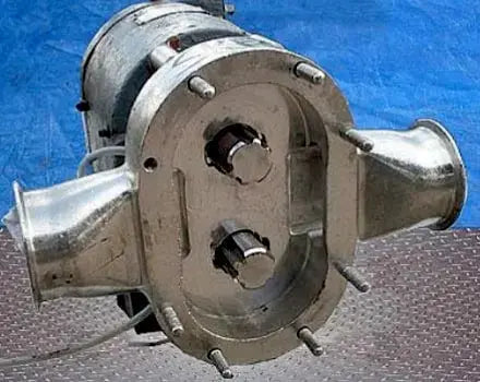 Bomba de desplazamiento positivo Tri Clover PRED 25. Modelo: PRED25-3M-UC4-SL-S. Número de serie: 329798-01. Capacidad máxima a 20 psi: 28 gpm. Desplazamiento por 100 revoluciones: 8 gal. Opción de sello: Doble sello mecánico con descarga de agua. Las bombas Tri Clover funcionan de manera más efectiva en el servicio de elevación de succión; Maneje cualquier cosa, desde líquidos hasta semisólidos con vapores arrastrados. También reducen los costos de mantenimiento y el tiempo de inactividad gracias a su mayor vida útil del sello y del rotor. Entradas: (1) interior rectangular con conector S-line con brida de 3 pulgadas. Salidas: (1) interior rectangular con conector S-line con brida de 3 pulgadas. Dimensiones totales: 16 pulgadas de largo x 14-1/2 pulgadas de ancho x 11 pulgadas de alto.