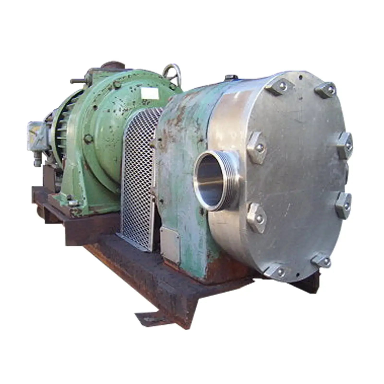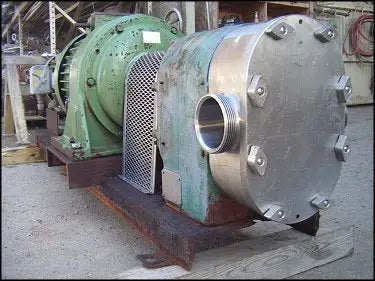 Bomba de desplazamiento positivo Tri Clover. Modelo: PR300. (2) rotores de 7-3/4 pulgadas. Motor eléctrico Baldor: 20 hp, 1765 rpm, 230/460 V, 48/24 A, 60 Hz, trifásico. Variador SM-Beier: modelo: S 15 AGY 4, rango de velocidad: 0,2-0,8. Entrada 1750 rpm. (1) Entrada acme de 4 pulg. (1) Salida acme de 4 pulg. Dimensiones totales: 7 pies ½ pulgadas de largo x 2 pies de ancho x 2 pies 4 pulgadas de alto (GJ)