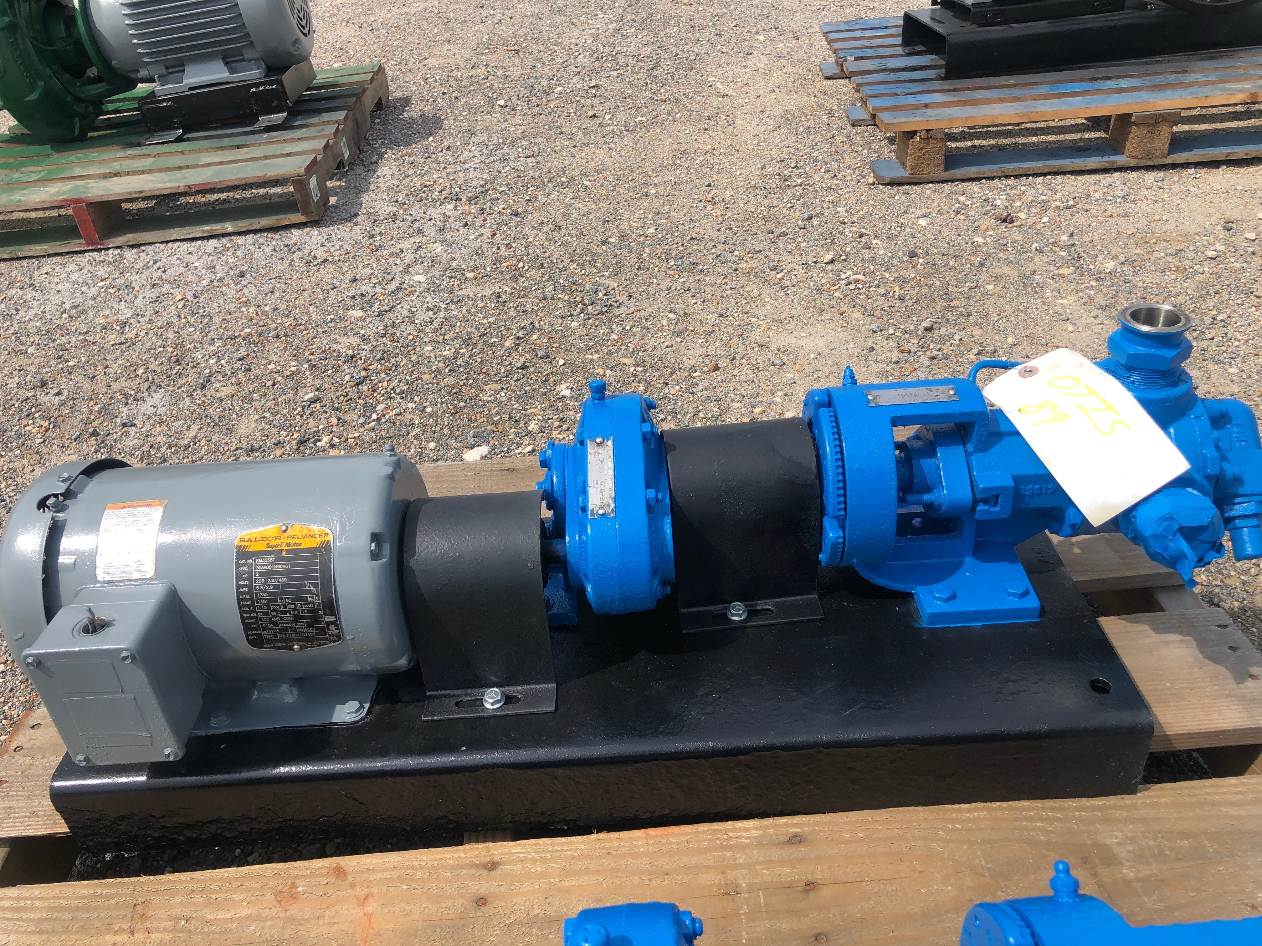 Bomba rotativa de engranajes de hierro fundido de desplazamiento positivo Viking. Número de serie: 11976707, Número de modelo: H4124A. Tamaño de puerto estándar (pulg.): 1,5. Clasificación nominal de la bomba (pulg): 15. Clasificación nominal de la bomba (pulg.): 2,8. RPM máximas: 1750. Presión máxima (PSIG): 200. Barra de presión máxima: 14. Barra de presión máxima: 14. Salida y entrada de 1,5 pulgadas. La bomba y el motor han sido repintados. Motor industrial Baldor Reliance - Número de catálogo: M3558T, Especificaciones: 35A001P692H1, HP: 2, Voltios: 208-230/460, APMS: 6.7-6.2/3.1, RPM: 1750, Marco: 145T, HZ: 60.