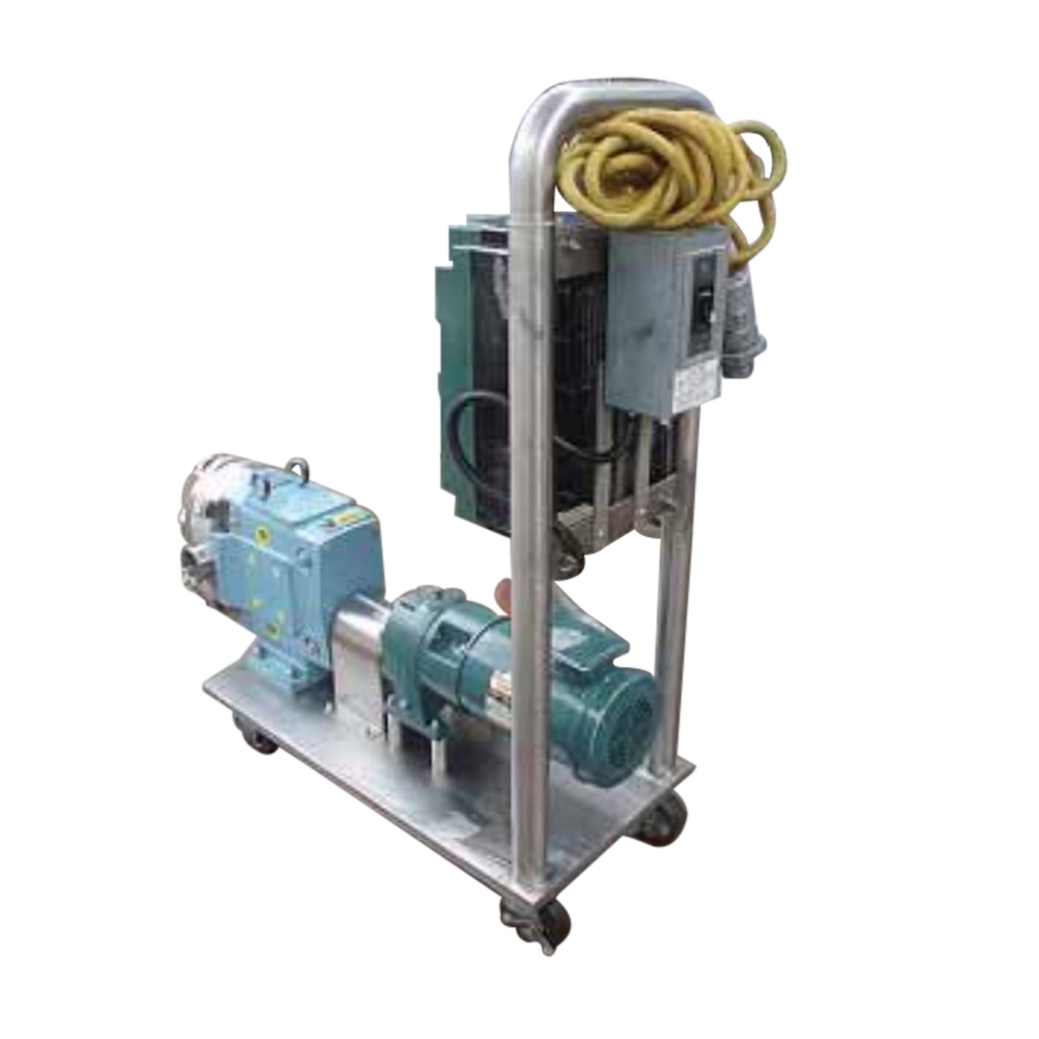 Bomba de desplazamiento positivo Waukesha. Modelo: 60. El caudal de la bomba nueva es de 90 gpm con la potencia y presión requeridas. Discuta con el vendedor su proceso y producto para determinar si esta bomba reacondicionada debe cumplir con su tarea específica. (2) rotores de 6-3/8 pulg. (1) Entrada S-line de 2-1/2 pulg. (1) Salida S-line de 2-1/2 pulg. Variador de frecuencia eléctrico Reliance: 2 hp, 460 voltios de entrada de CA y 460 voltios de salida de CA, 4,2 y 3,5 amperios máximos, 50/60 Hz y trifásico. Motor eléctrico Reliance: relación 5,0, 1750 rpm de entrada, 281 de torsión, 1,57 hp de entrada máxima. Motor eléctrico Reliance: 1,5 hp, 1725 rpm, 208-230/460-480 voltios, 5,6-5,6/2,8-3 amperios, 60 Hz, trifásico. Dimensiones totales: 3 pies 4 pulgadas de largo x 1 pie 4-1/8 pulgadas de ancho x 3 pies 11 pulgadas.