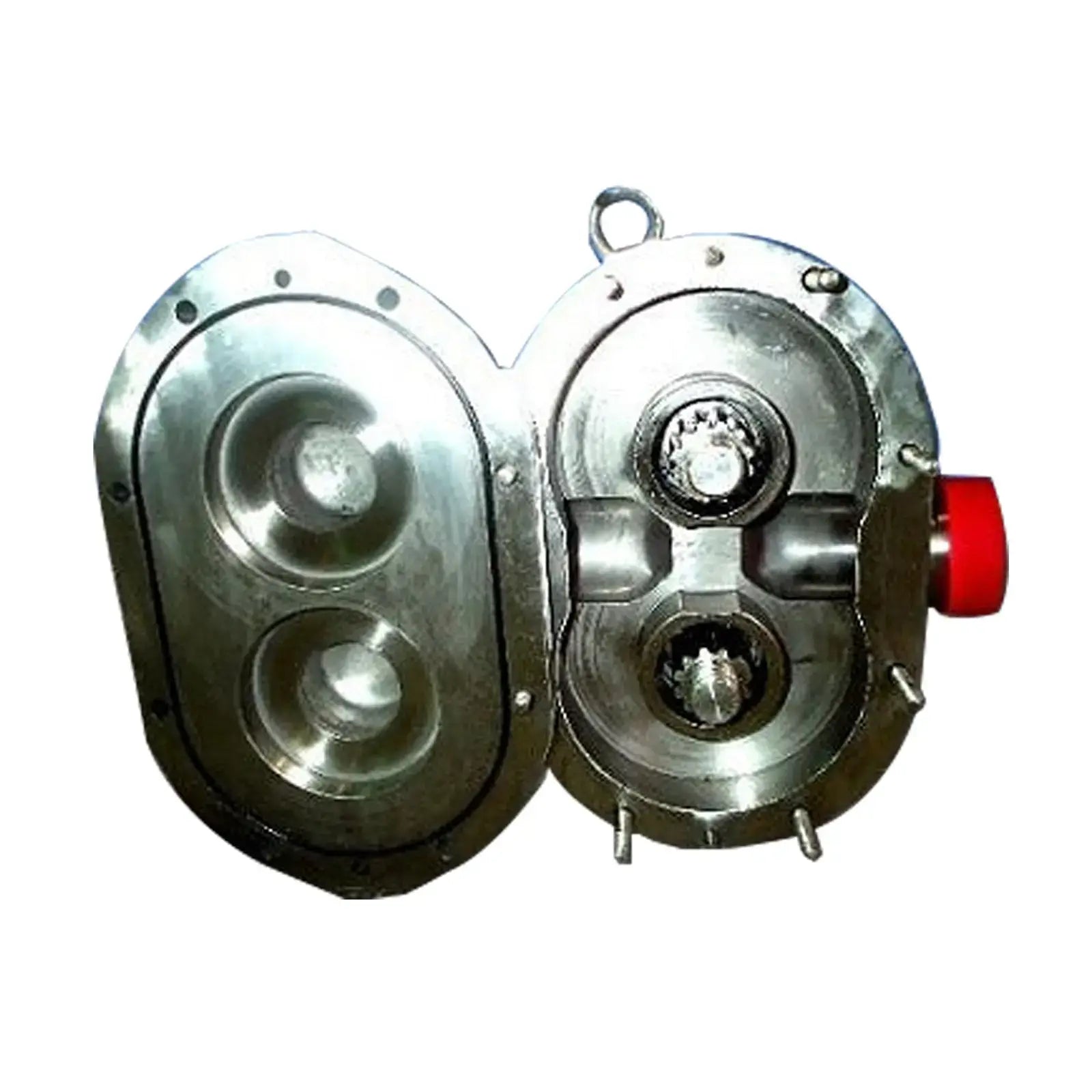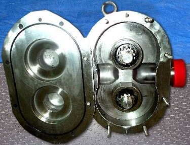Bomba de desplazamiento positivo Waukesha. Modelo: 60. S/N 91207 SS. Calificación sanitaria A-3. Desplazamiento por revolución: 0,153 gal. Capacidad nominal: 90 gpm. Rpm máximas: 600. Sello de junta tórica simple. Características: flujo bidireccional, montaje de 3 vías, posición del eje inferior e instalación o conversión fácil e intercambiable. Aplicación típica del producto: edulcorantes (panadería), grasas y aceites, rellenos de frutas (bebidas), jarabes, rellenos de nata, chocolate, nata (láctea), leche, mantequilla. Entradas/salidas: 2-1/2 pulg. de diámetro. Línea S. Dimensiones totales: 21 pulgadas de largo x 12 pulgadas de ancho x 16 pulgadas de alto.