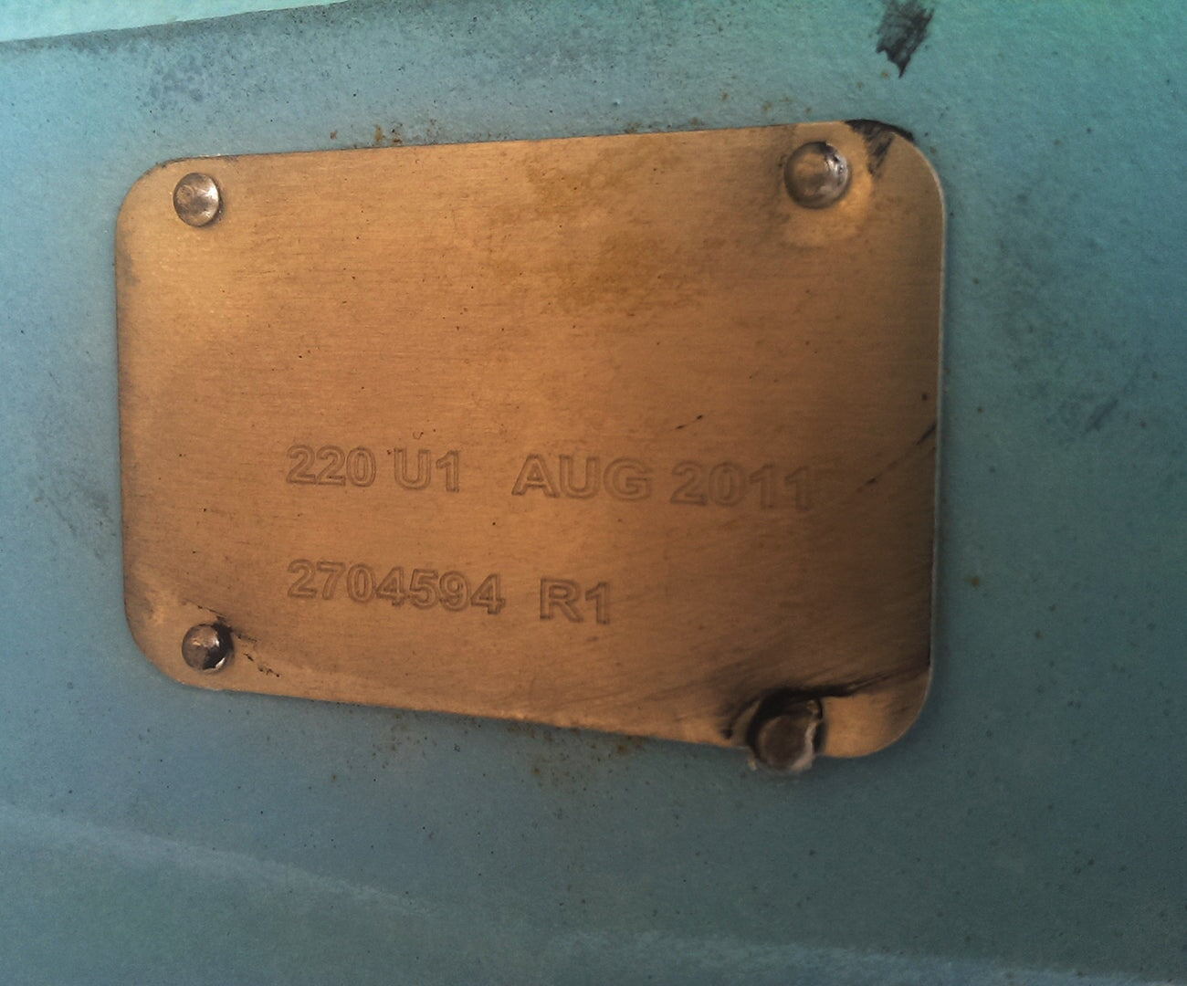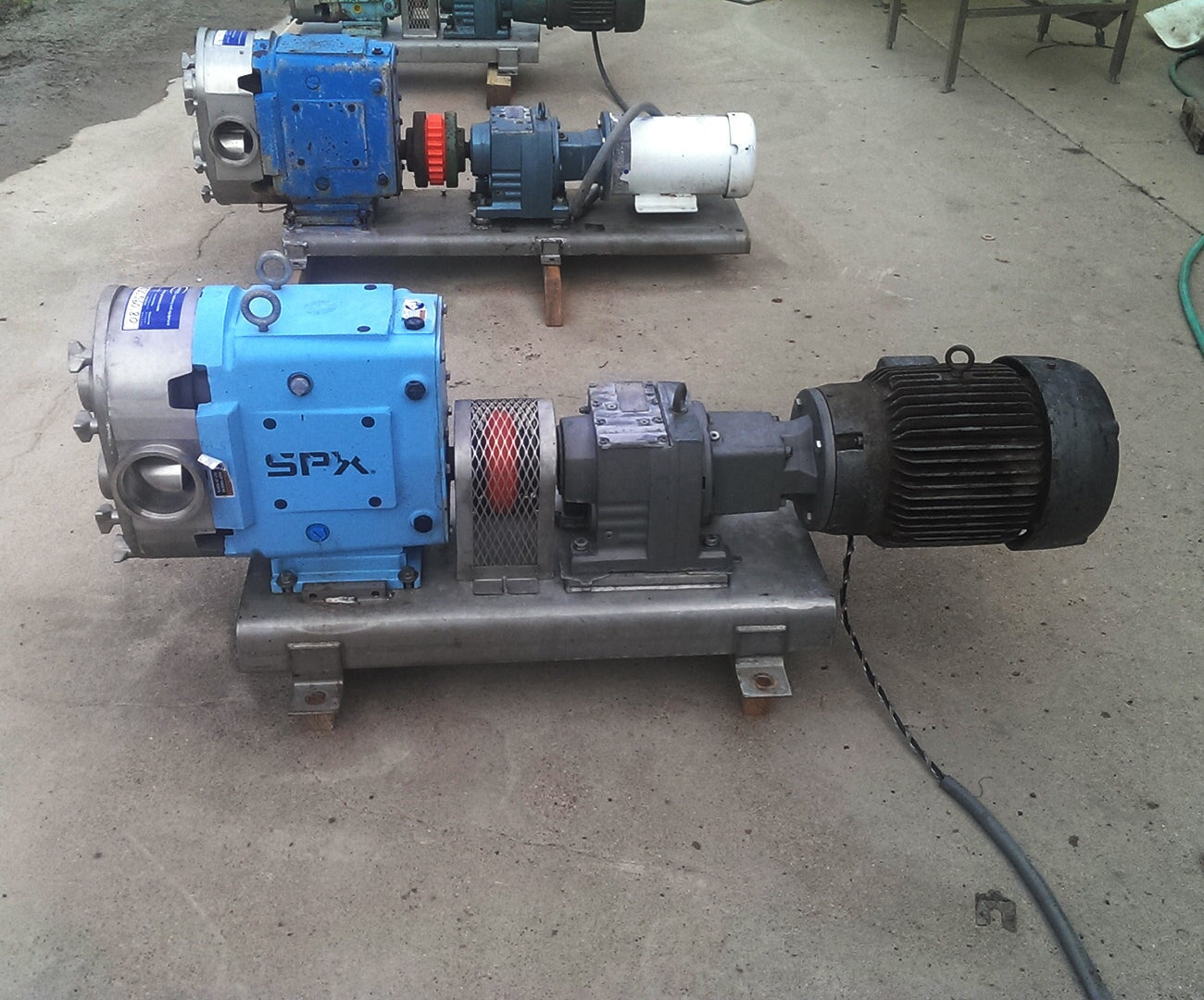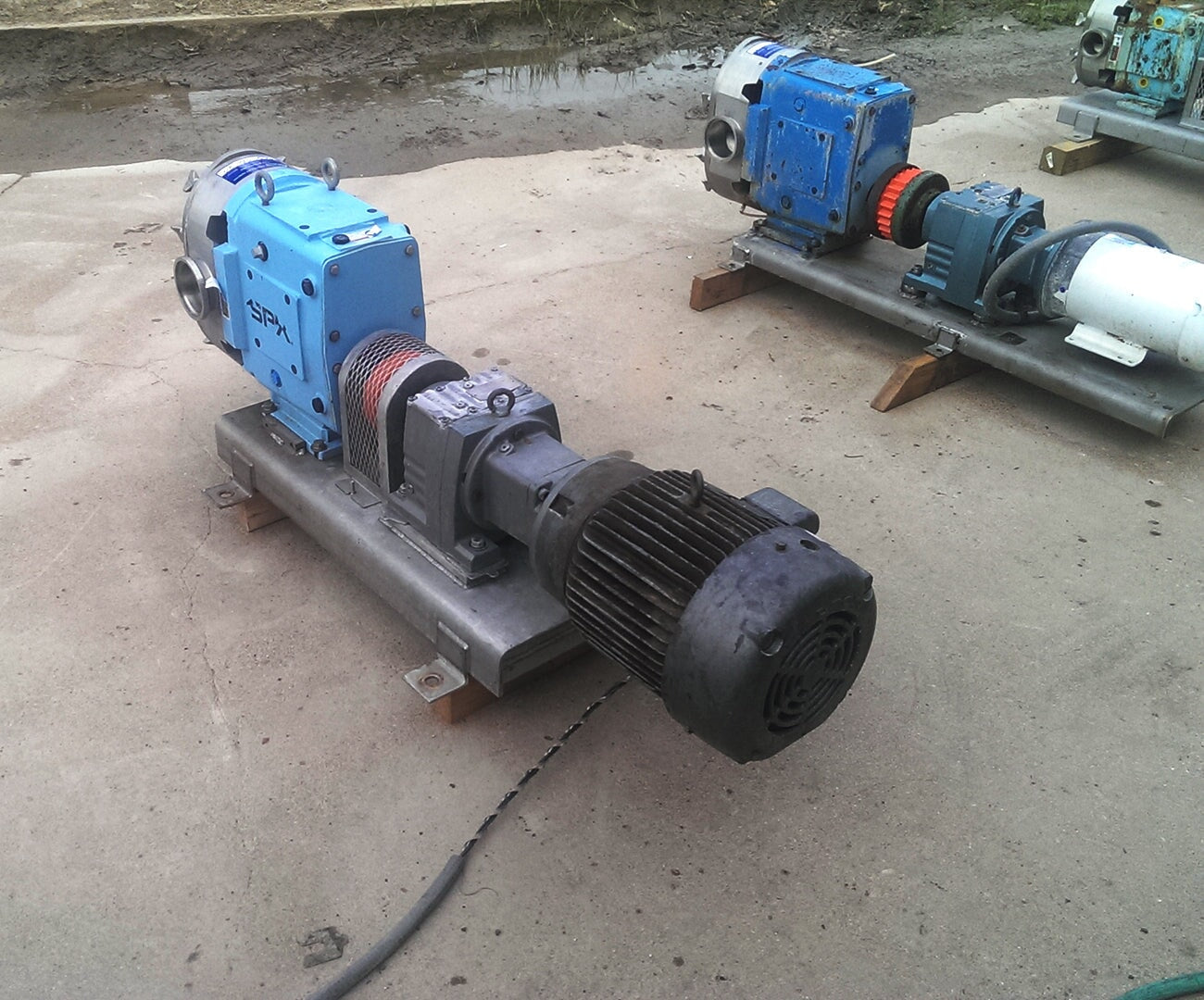 Bomba de desplazamiento positivo SPX Waukesha Cherry-Burrell. Modelo: 220 U1. Número de serie: 2704594 R1. Fecha: Ago 2011. 3A Sanitario. Serie Universal I. El caudal de la bomba nueva es de 310 gpm con los caballos de fuerza y RPM requeridos. Discuta con el vendedor su proceso y producto para determinar si esta bomba debe cumplir con su tarea específica. Desplazamiento por revolución: 0,522 galones. Presión máxima: 200 PSI. El caudal estimado con esta transmisión por engranajes es de 172 GPM. Relación de transmisión de engranajes SEW-Eurodrive: 5,31 (RPM finales 329,5). Motor Baldor: 7,5 HP, 460 V, 10 amperios, 1750 RPM, 60 Hz, trifásico. Puertos de entrada/salida: Conexiones I-line de 4 pulgadas de diámetro. Dimensiones totales: 5 pies de largo x 1 pie 9 pulgadas de ancho x 2 pies de alto (ACN208-265)