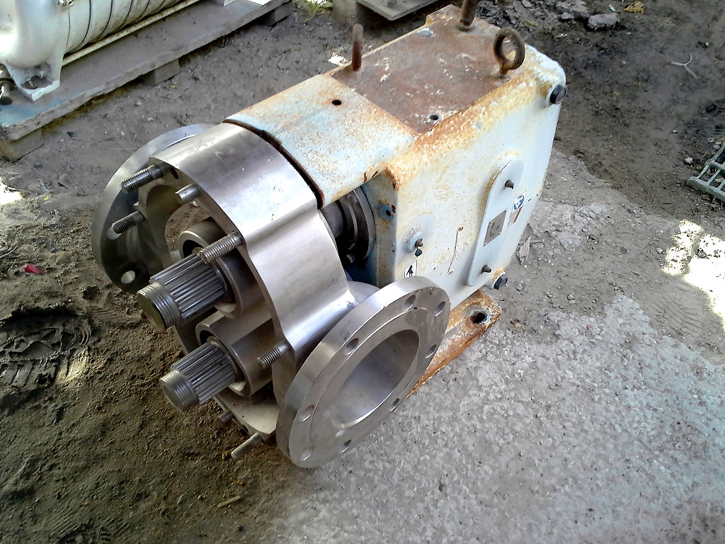 2005 Bomba de desplazamiento positivo Waukesha. Modelo: 320 U1. El caudal de la bomba nueva es de 450 gpm con los caballos de fuerza y la presión requeridos. Las características incluyen: facilidad de limpieza y desmontaje, opciones de montaje de tres vías y rotores de aleación Waukesha 88 que no irritan. Presión máxima: 200 psi. Velocidad máxima: 600 rpm. Rango de temperatura: -40ºF a 300ºF. Cuerpo, tapa y eje de la bomba de acero inoxidable 316. Entradas/salidas: (2) 6 pulg. de diámetro. Puertos bridados. *Nota: La bomba está incompleta. Dimensiones totales: 2 pies 7 pulgadas de largo x 1 pie 5 pulgadas de ancho x 2 pies de alto (ACN314).