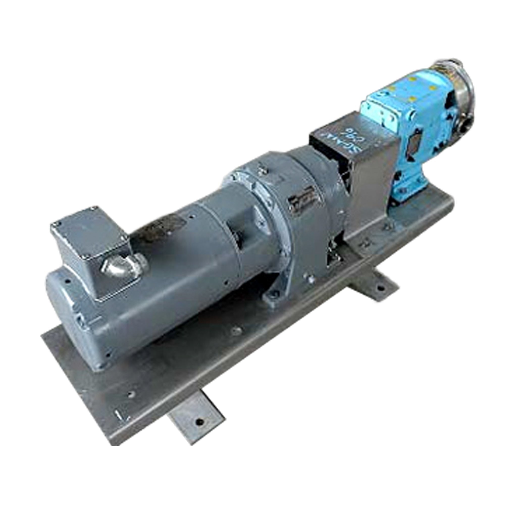 Bomba de desplazamiento positivo Waukesha 18. S/N: 224952 98. El caudal de una bomba nueva es de 17 gpm a rpm máximas de 600. Configuración para aceptar el sello de labio PS-1 Fluidol no estándar/no sanitario hecho de material FKM, este diseño U1 presenta un rango de temperatura de -40 °F a 300 °F y superficies de contacto del producto de acero inoxidable 316. Motor Baldor: 1 hp, 1725 rpm, 208-230/460 V, 3,6-3,2/1,6 amperios, 60 Hz, trifásico. Reductor de engranajes Dodge: modelo 56DM16A, relación 11,4, rpm de salida: 154. Entradas/salidas: (2) 1-1/2 pulg. de diámetro. Línea S. Dimensiones totales: 3 pies 3 pulgadas de largo x 10 pulgadas de ancho x 1 pie 7 pulgadas de alto.