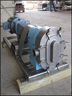 Bomba de desplazamiento positivo Waukesha. Modelo: 55. El caudal de la bomba nueva es de 90 gpm con la potencia y presión requeridas. Discuta con el vendedor su proceso y producto para determinar si esta bomba reacondicionada debe cumplir con su tarea específica. (2) rotores de 6-3/8 pulg. Motor eléctrico Reliance: modelo: 182TC, 1750 rpm, 220/440V, 4,6/9,2 amperios, 60 Hz, trifásico. Transmisión por engranaje del motor: modelo: 18TC-182 TC, relación: 1:6,86. Entrada/salida: (2) ACME de 2 pulgadas. Dimensiones totales: 4 pies 3 pulgadas de largo x 1 pie 8 pulgadas de ancho x 1 pie 6 pulgadas de alto (ACN119a).
