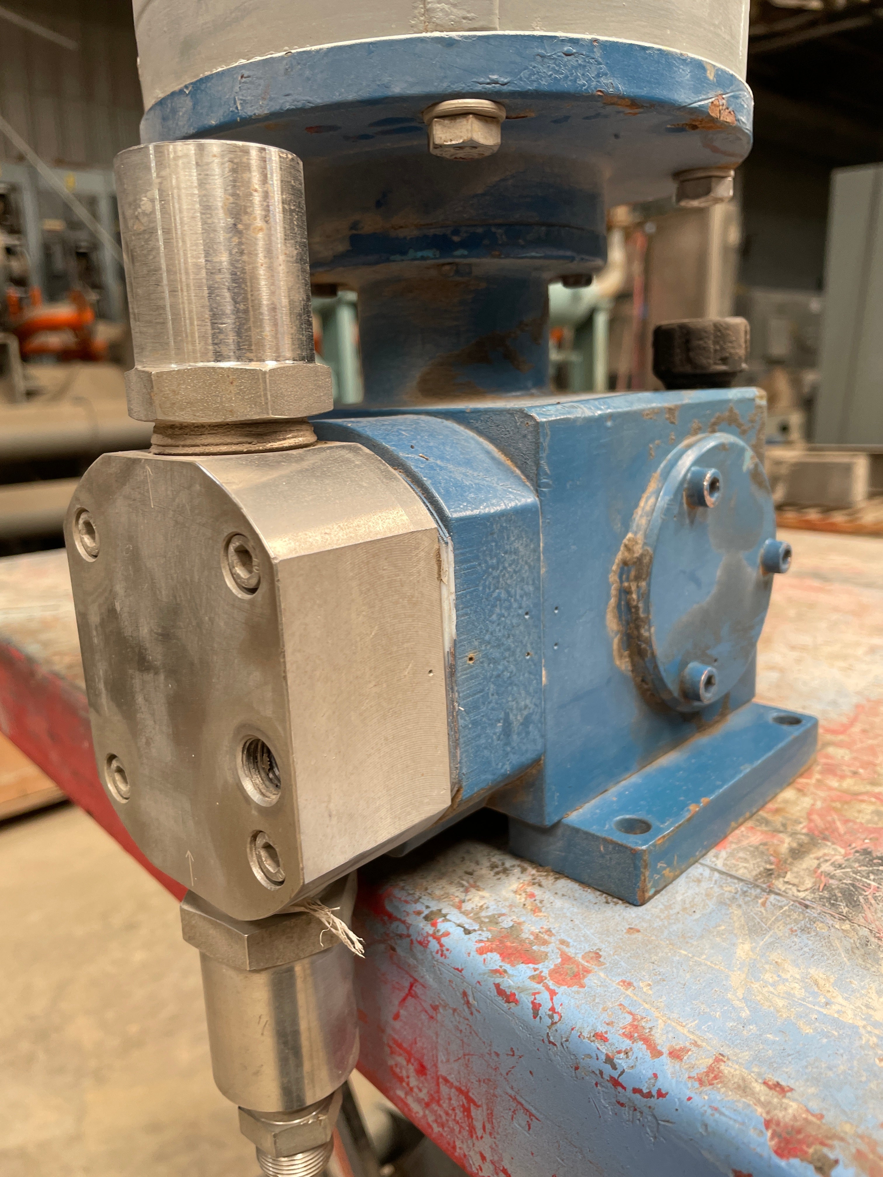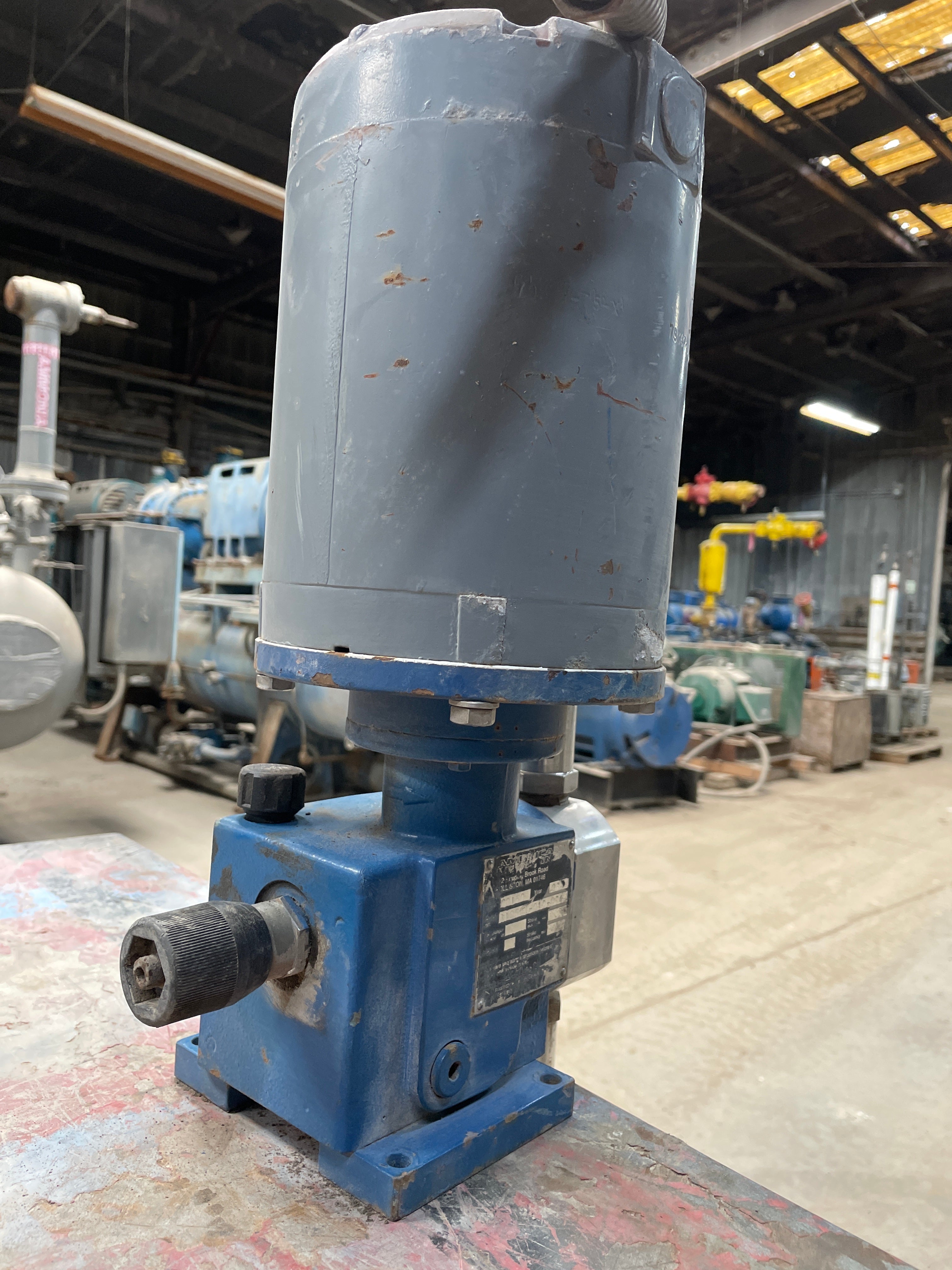 Bomba dosificadora de diafragma LEWA - Tipo: C0150, Número de serie: 310504-010-001. Año de fabricación: 1998. Motor eléctrico Reliance - Número de serie: P56X1338W-FA, Marco: FM56C, Tipo: P, Ph: 3, HP: 1/2, RPM: 1725, Voltios: 230/460, Amperios: 1.5/.75 , Hz:60, SF: 1,15. Clasificación de tiempo: CONT.