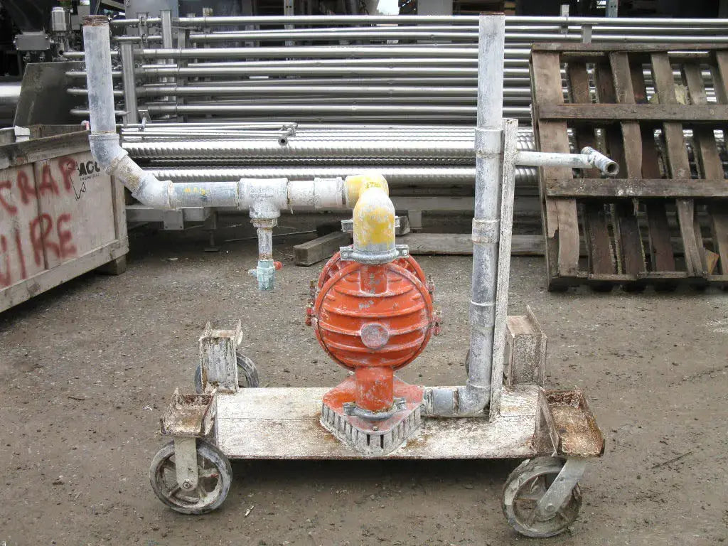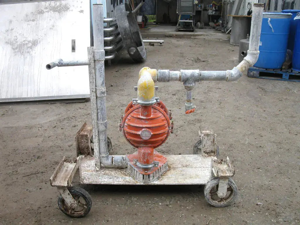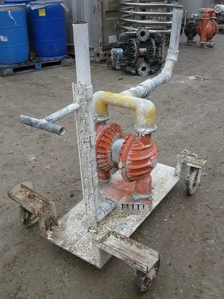 Bomba de diafragma Versa-Matic. Entradas/salidas: (2) MNPT de 2 pulg. (2) 1 pulg. FNPT. Dimensiones totales: 4 pies 2-1/8 pulgadas de largo x 2 pies 11-1/2 pulgadas de ancho x 3 pies 10-1/4 pulgadas de alto.