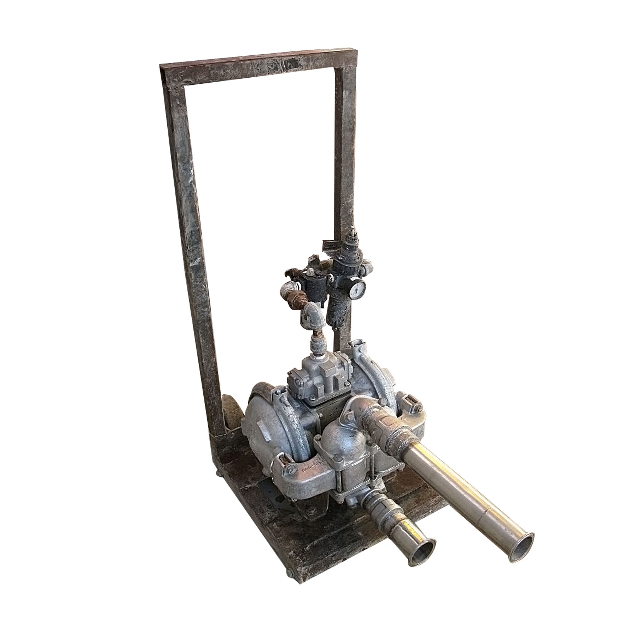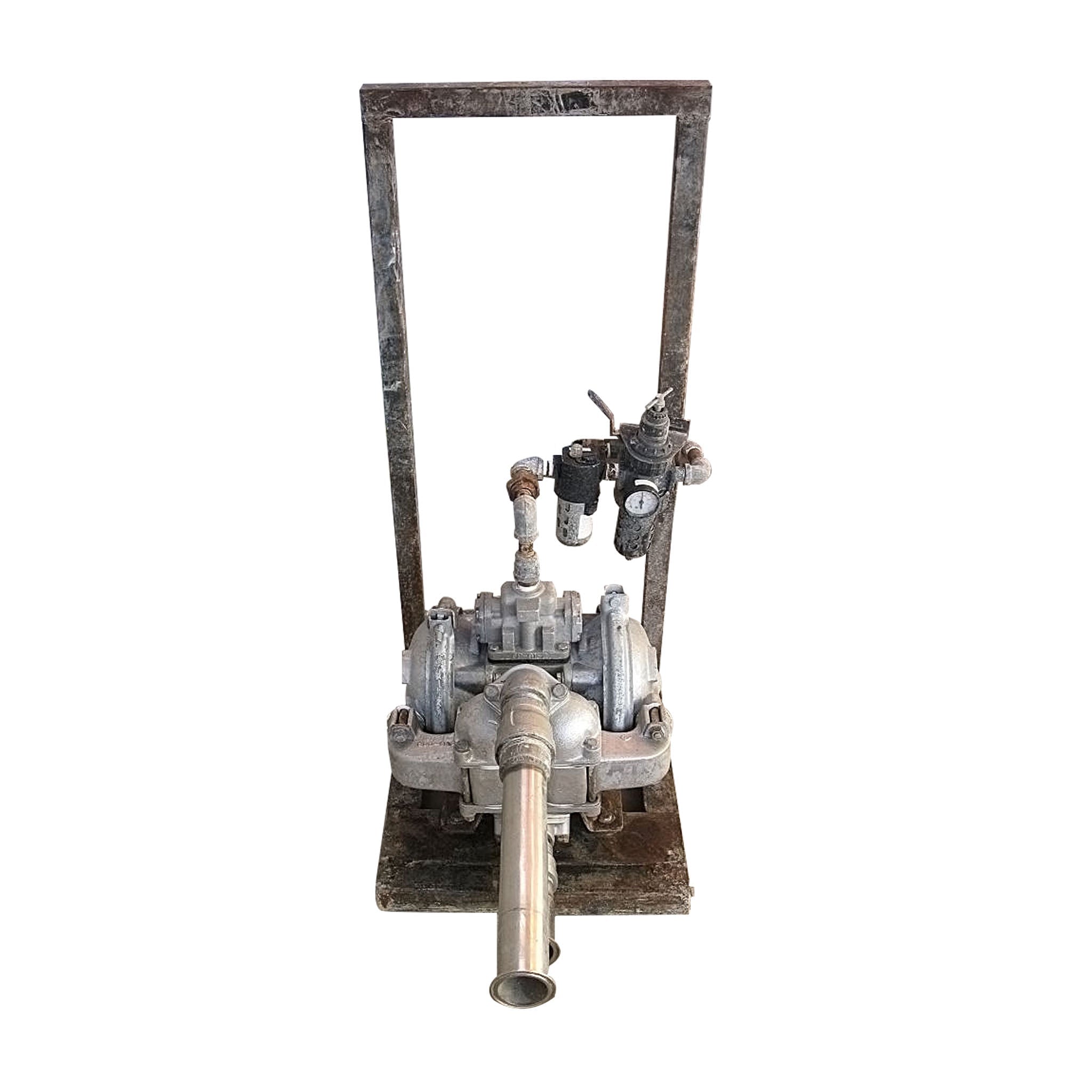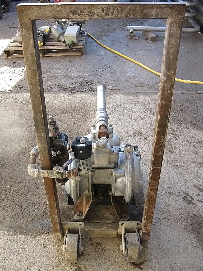 Bomba de doble diafragma Warren Rupp Sandpiper. Modelo: SB1 ½-A. N/S: 368785. Tipo: SGN-5-SS. Las bombas metálicas Sandpiper Heavy Duty Ball HDB (SB) son ideales para fluidos finos a viscosos y de sólidos pequeños a fluidos cargados. El tamaño 1.5 puede generar hasta 90 GPM a baja presión y hasta 100 PSI con bajo caudal. Las aplicaciones de lodos/lodos son adecuadas si se utiliza el puerto de descarga inferior. Consulte el cuadro a continuación para obtener más información sobre las aplicaciones. Características adicionales: Construcción totalmente atornillada y de paredes gruesas. Biela de diafragma duradera. Conexiones de colectores horizontales y verticales. Rango de sólidos de 0,25 (6 mm) a 0,86 (22 mm). Imprima en seco hasta 20 pies de agua. Presión de aire máxima recomendada: 100 PSI. Entrada: (1) Línea S de 2 pulgadas. (1) Línea S de 2-1/2 pulgadas. Dimensiones totales: 3 pies 3 pulgadas de largo x 1 pie 7-3/8 pulgadas de ancho x 3 pies 4-7/8 pulgadas de alto.