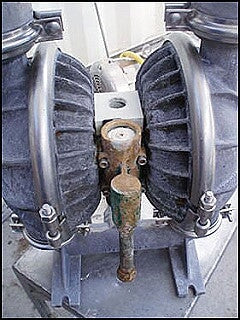 (2) Bomba de doble diafragma Wilden. Modelo: 8. Diafragmas de teflón. Válvula de bola. Entradas: (1) 2-1/2 pulg. de diámetro. Accesorio FNPT, (1) 3/4 pulg. de diámetro. Racor FNPT (entrada de aire). Salidas: (1) 2-1/2 pulg. de diámetro. Accesorio FNPT, (1) 1 pulg. de diámetro. Racor FNPT (escape). Dimensiones totales: 1 pie 3 pulgadas de largo x 1 pie 6 pulgadas de ancho x 2 pies 4 pulgadas de alto.