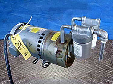 Bomba de vacío de gas. Modelo: 0822-V127-G277, S/N: 0586. Equipado con filtro de entrada y silenciador de escape. Motor General Electric, 1/2 hp, 1725/1425 rpm, 208-220/440 amperios, 1,9/0,95 amperios, 60/50 Hz, trifásico. Entradas/salidas: (2) 3/8 pulg. de diámetro. FPT. Dimensiones totales: 18 pulgadas de largo x 10 pulgadas de ancho x 10 pulgadas de alto.